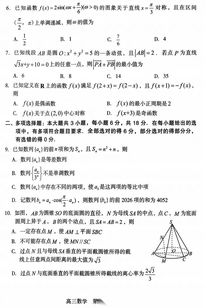 【超清无水印】:高三,2026九师联盟高三第7次质量检测 【超清无水印】:高三,2026九师联盟高三第7次质量检测
