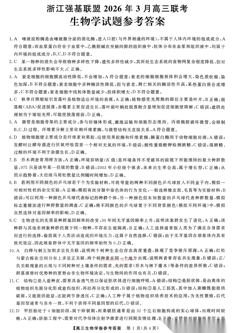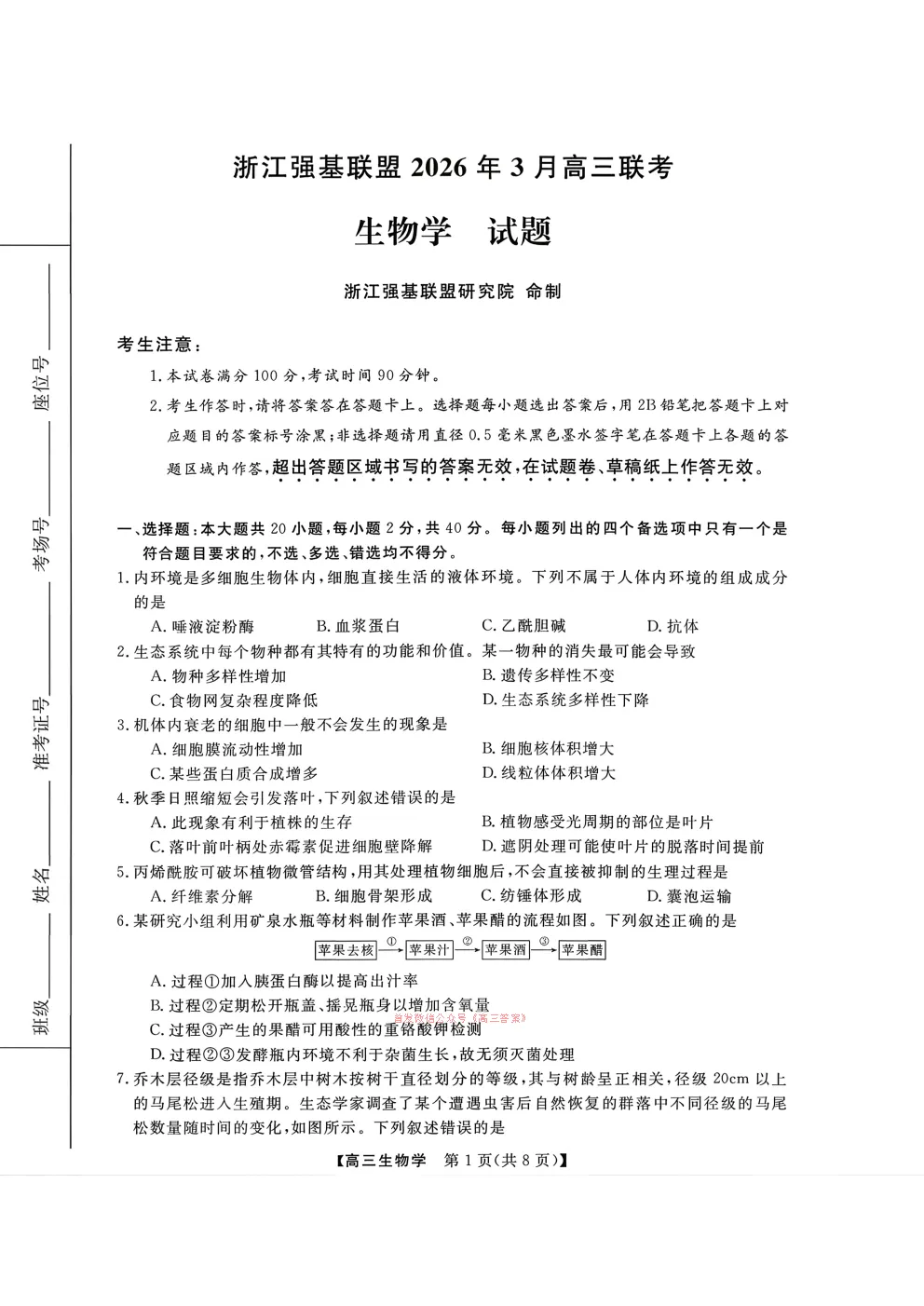 【全科】浙江强基联盟2026年3月高三联考 【全科】浙江强基联盟2026年3月高三联考