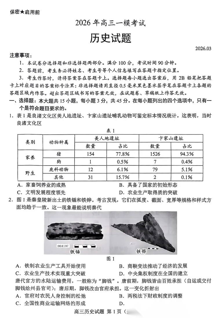 【聊城一模】聊城市2026年高考模拟试题一 【聊城一模】聊城市2026年高考模拟试题一