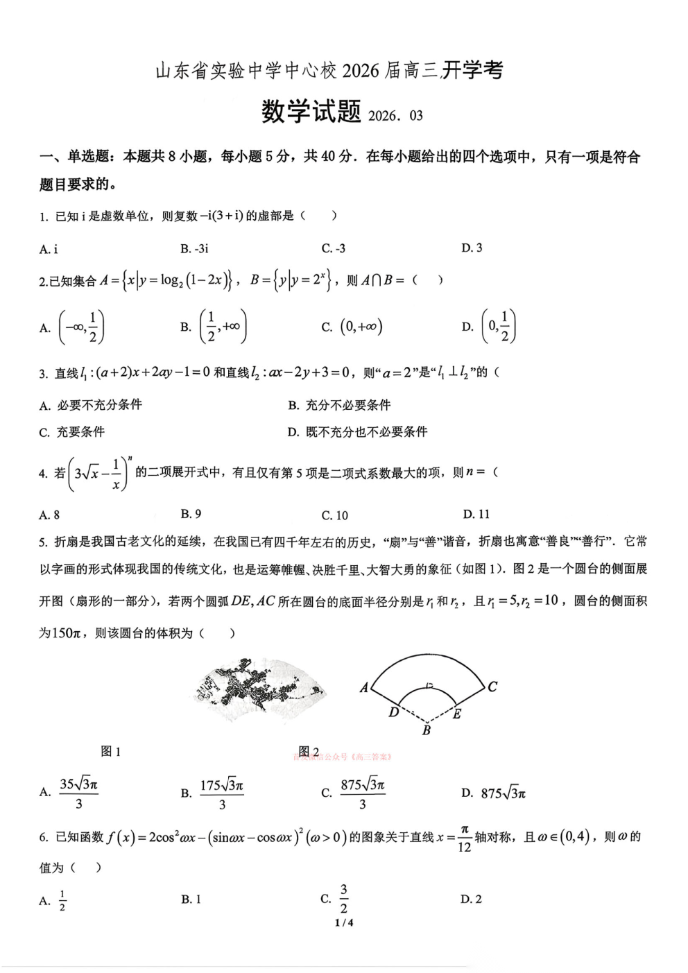 【聊城一模】聊城市2026年高考模拟试题一 【聊城一模】聊城市2026年高考模拟试题一