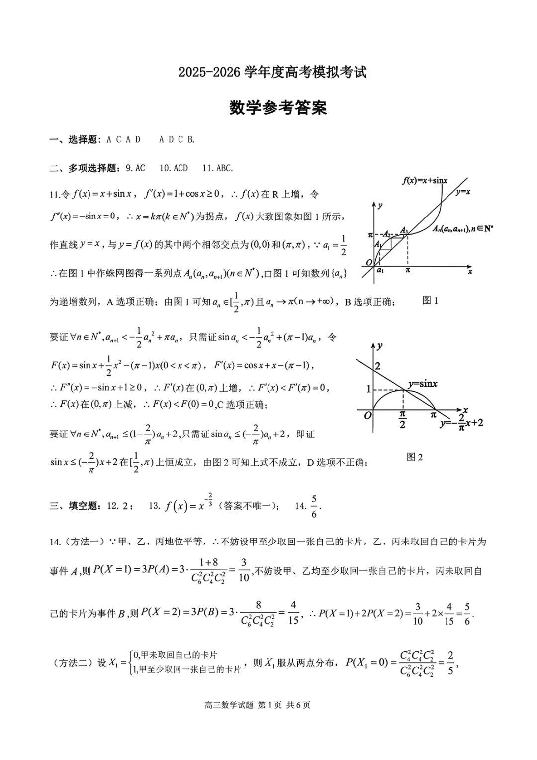 清华大学附属中学2025-2026学年高三下学期数学统练1 清华大学附属中学2025-2026学年高三下学期数学统练1
