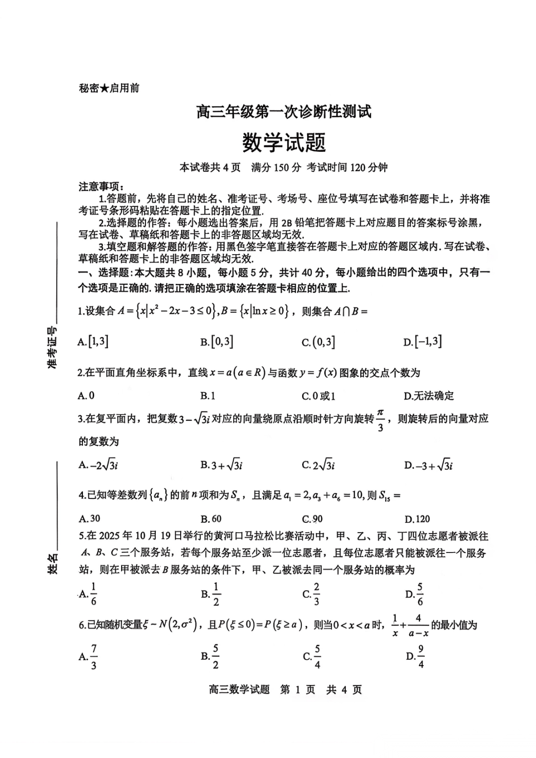 山东省实验2026届高三开学考 山东省实验2026届高三开学考