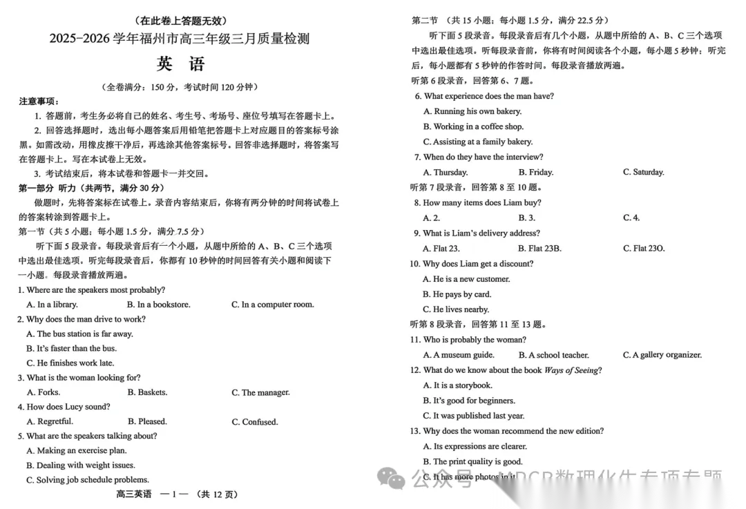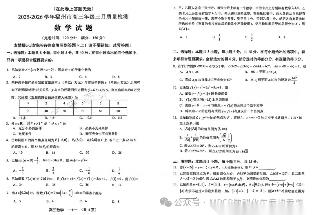 【超清无水印】:高三,福建省福州市2025-2026学年高三三月质量检测(福州二模) 【超清无水印】:高三,福建省福州市2025-2026学年高三三月质量检测(福州二模)