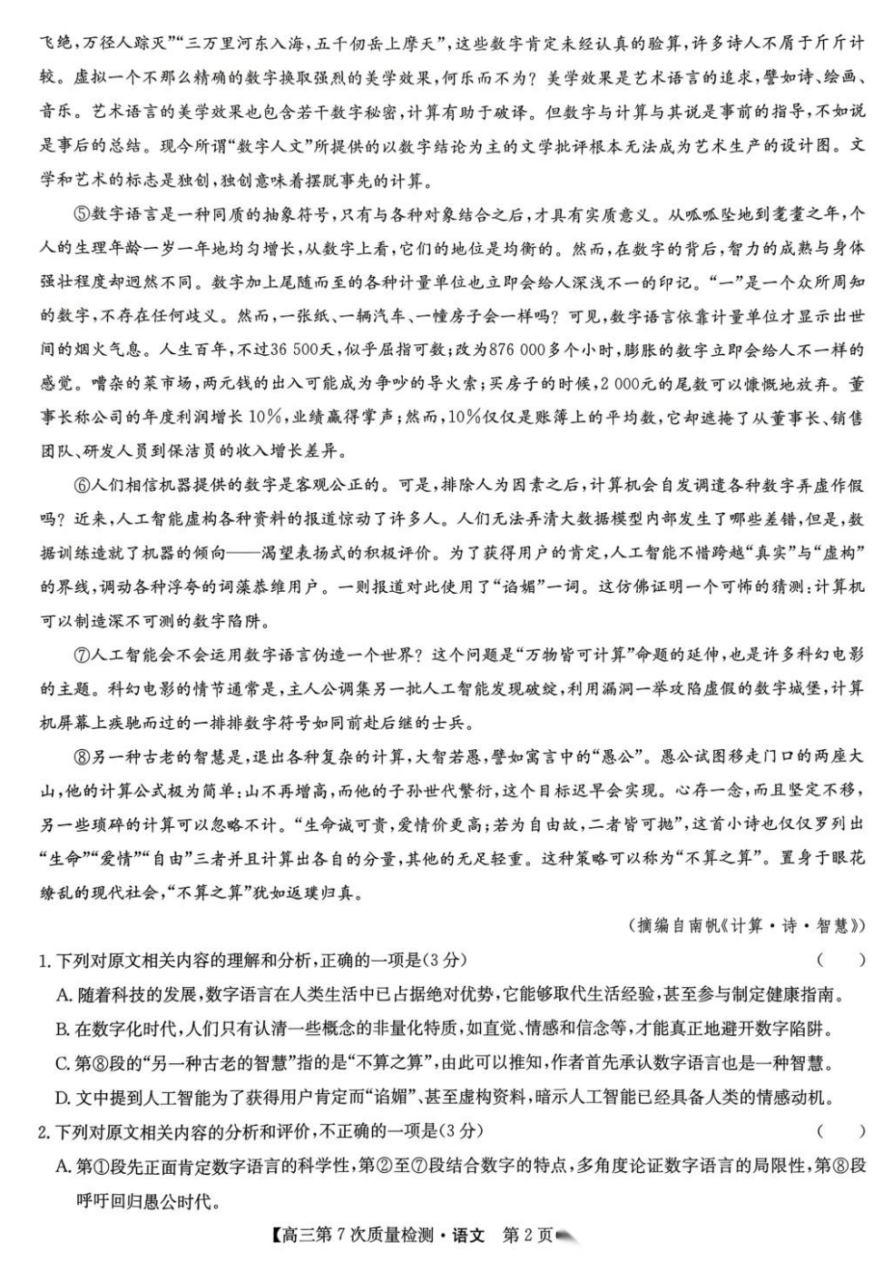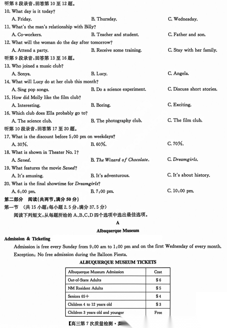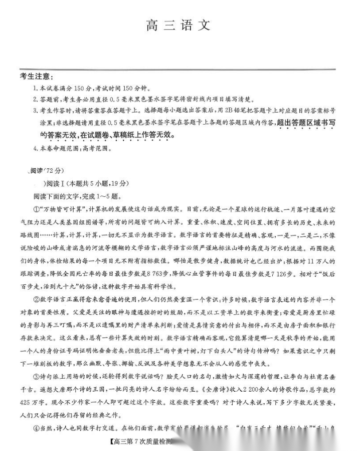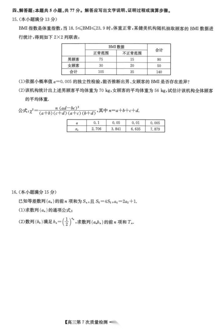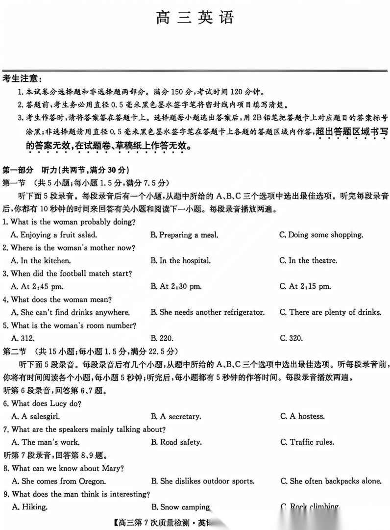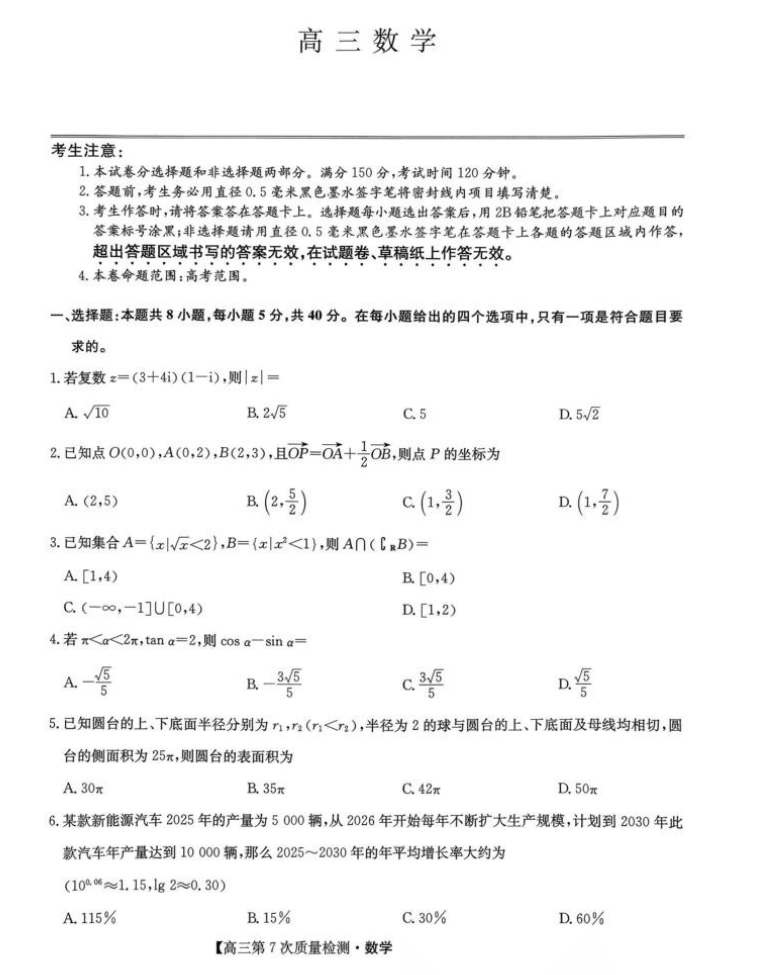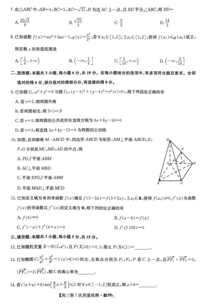 【九师联盟】【多考区卷】九师联盟2026届高三年级第7次质量检测(3.5-3.6) 全科试卷+答案