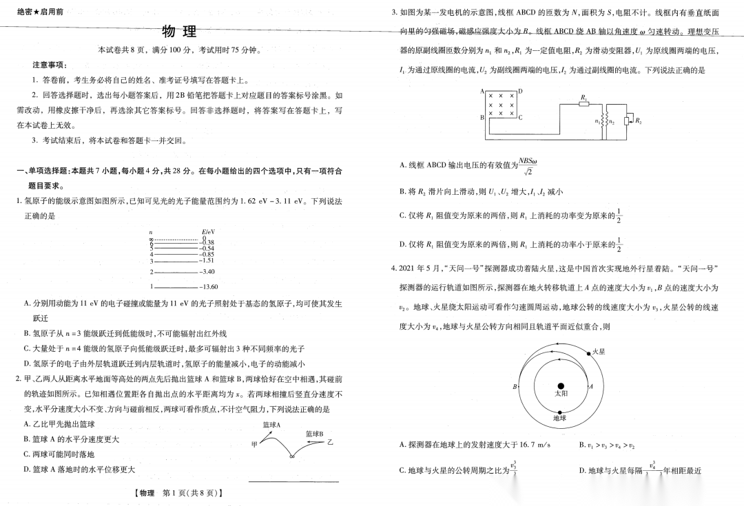 【超清无水印】:高三,2026大同一模-高三年级第一次模拟考试质量监测试卷 【超清无水印】:高三,2026大同一模-高三年级第一次模拟考试质量监测试卷