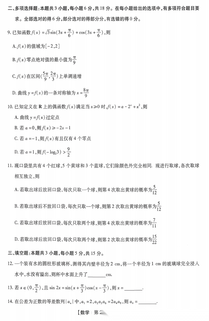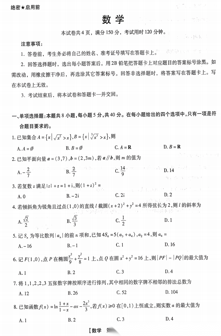 【九师联盟】【多考区卷】九师联盟2026届高三年级第7次质量检测(3.5-3.6) 全科试卷+答案 【九师联盟】【多考区卷】九师联盟2026届高三年级第7次质量检测(3.5-3.6) 全科试卷+答案