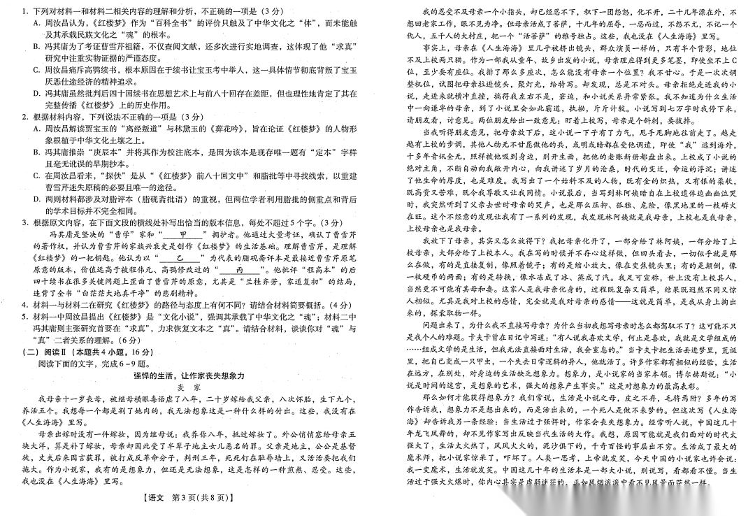 【湖北卷】湖北省襄阳市2026年3月高三年级下学期统一调研测试(3.5-3.6) 全科试题卷+答案 【湖北卷】湖北省襄阳市2026年3月高三年级下学期统一调研测试(3.5-3.6) 全科试题卷+答案