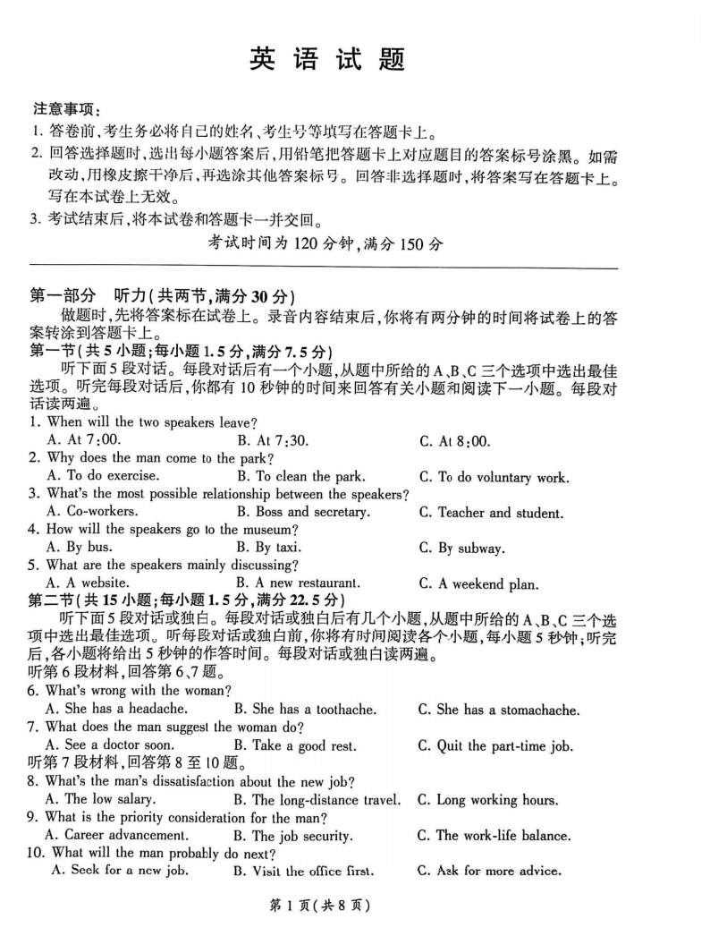 【西北卷】【陕西卷】【山西卷】山西省、陕西省-九师联盟2026届高三年级第7次质量检测(3.5-3.6) 全科试卷+答案 【西北卷】【陕西卷】【山西卷】山西省、陕西省-九师联盟2026届高三年级第7次质量检测(3.5-3.6) ...