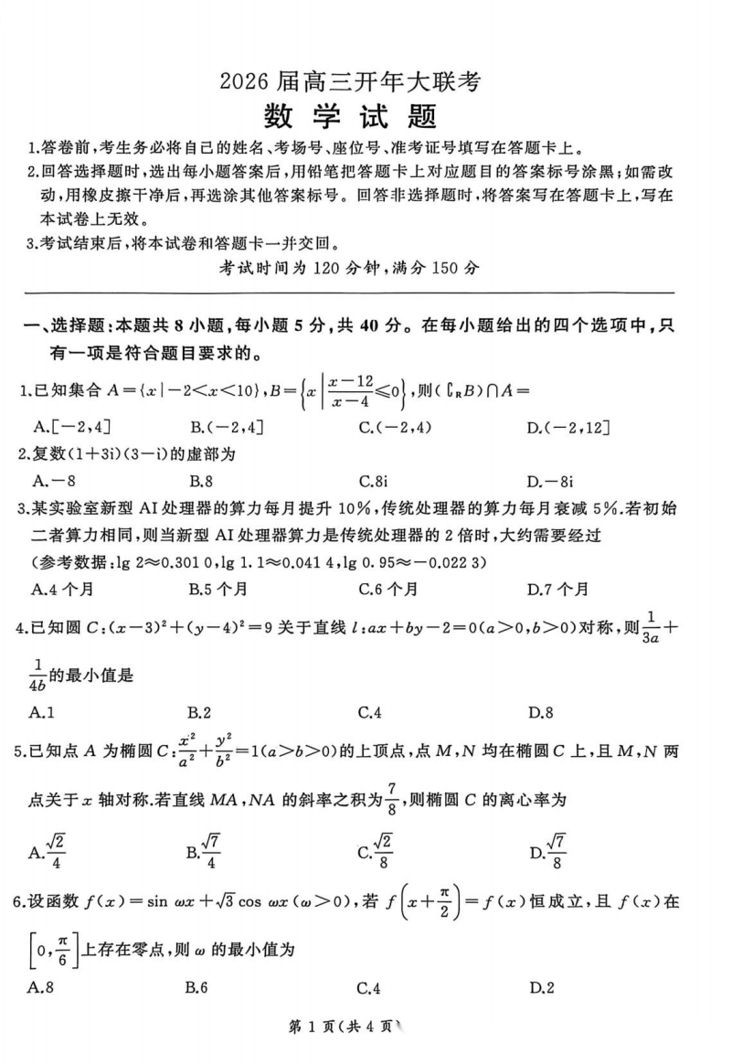 【百师联盟】【多考区卷】百师联盟2026年高三年级下学期3月开年大联考(3.5-3.6) 全科试卷+答案