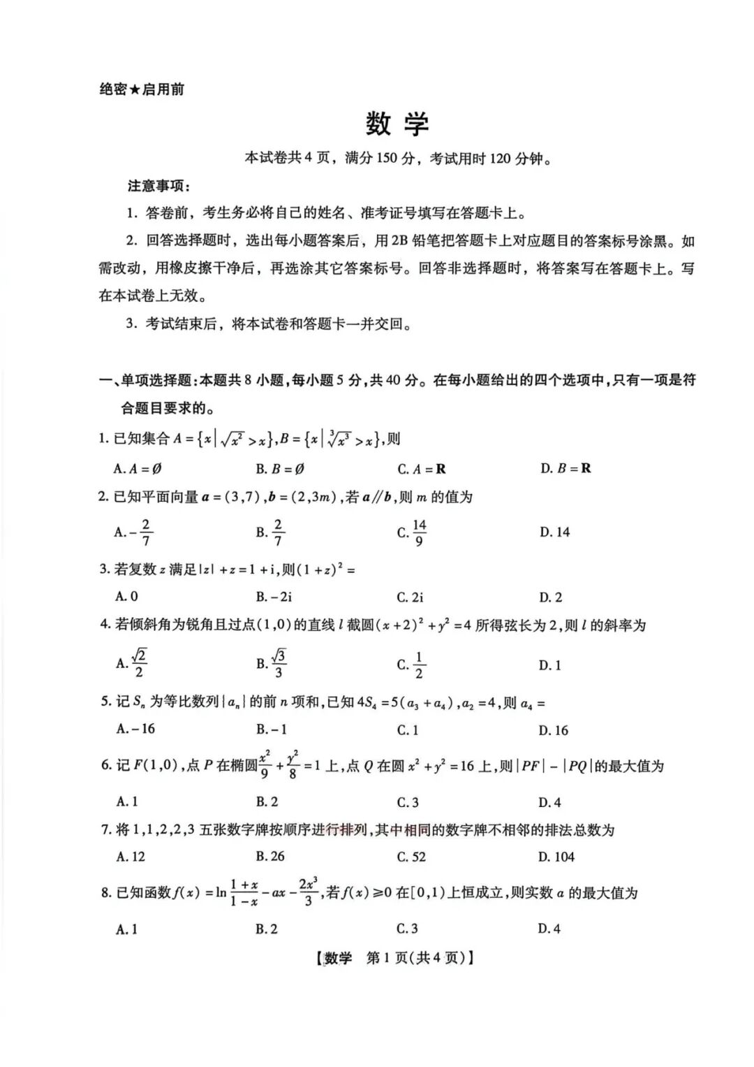 【九师联盟】【多考区卷】九师联盟2026届高三年级第7次质量检测(3.5-3.6) 全科试卷+答案 【九师联盟】【多考区卷】九师联盟2026届高三年级第7次质量检测(3.5-3.6) 全科试卷+答案