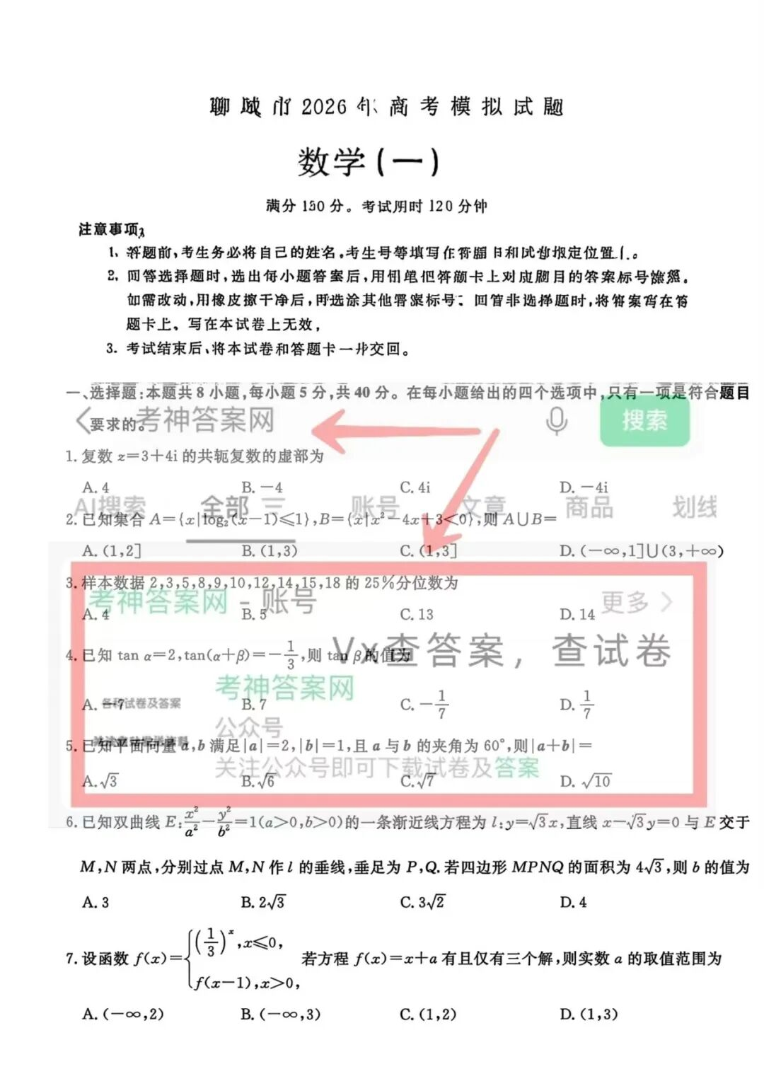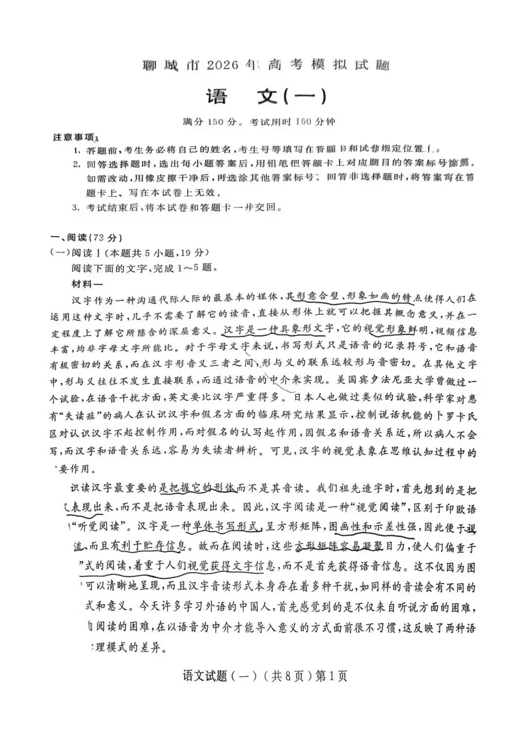 【聊城一模自制】聊城市2026年高考模拟测试自做答案!含试卷!收藏学习