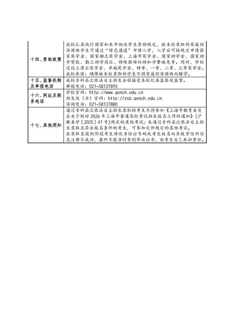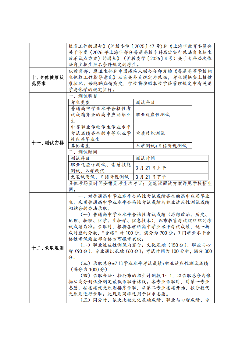 上海建桥学院2026年专科层次依法自主招生章程