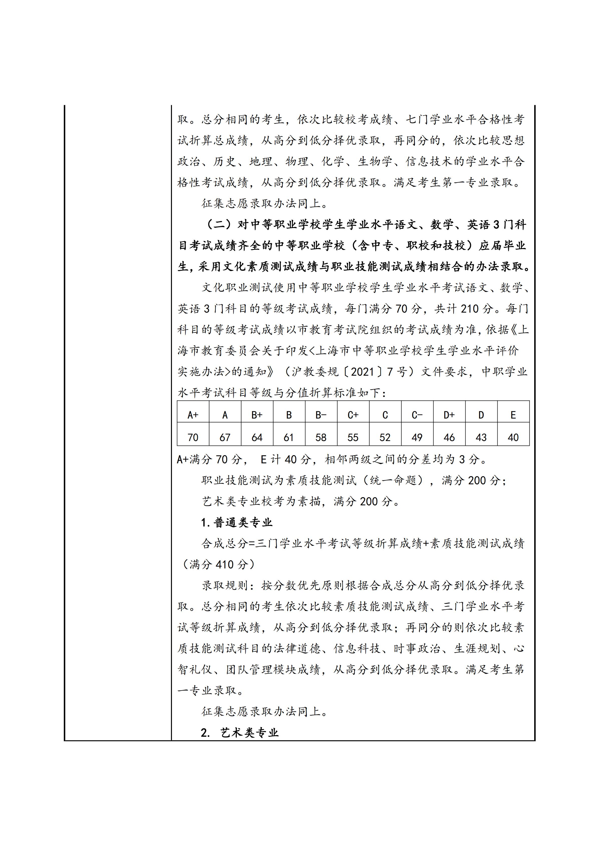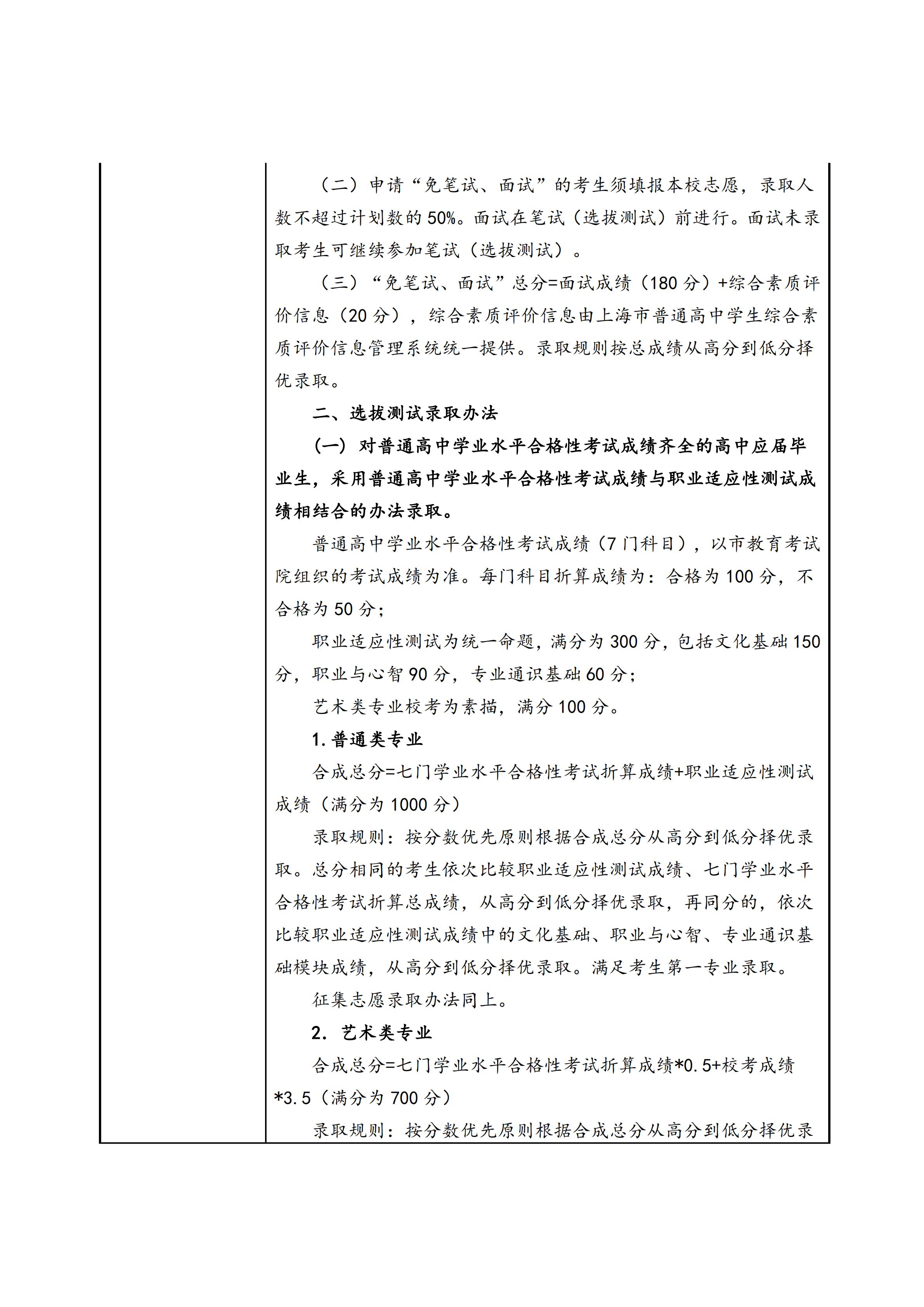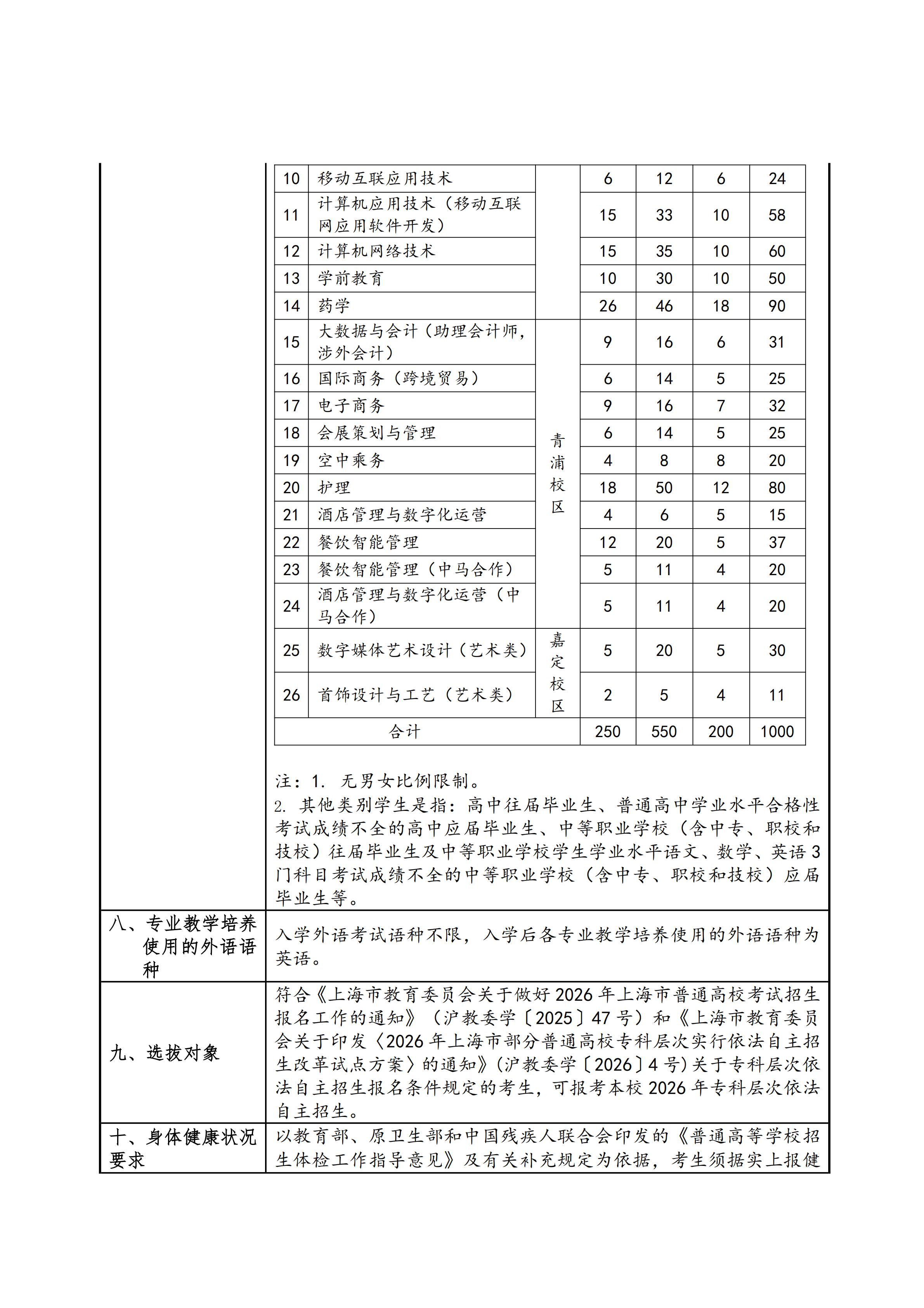 上海工商职业技术学院2026年专科层次依法自主招生章程