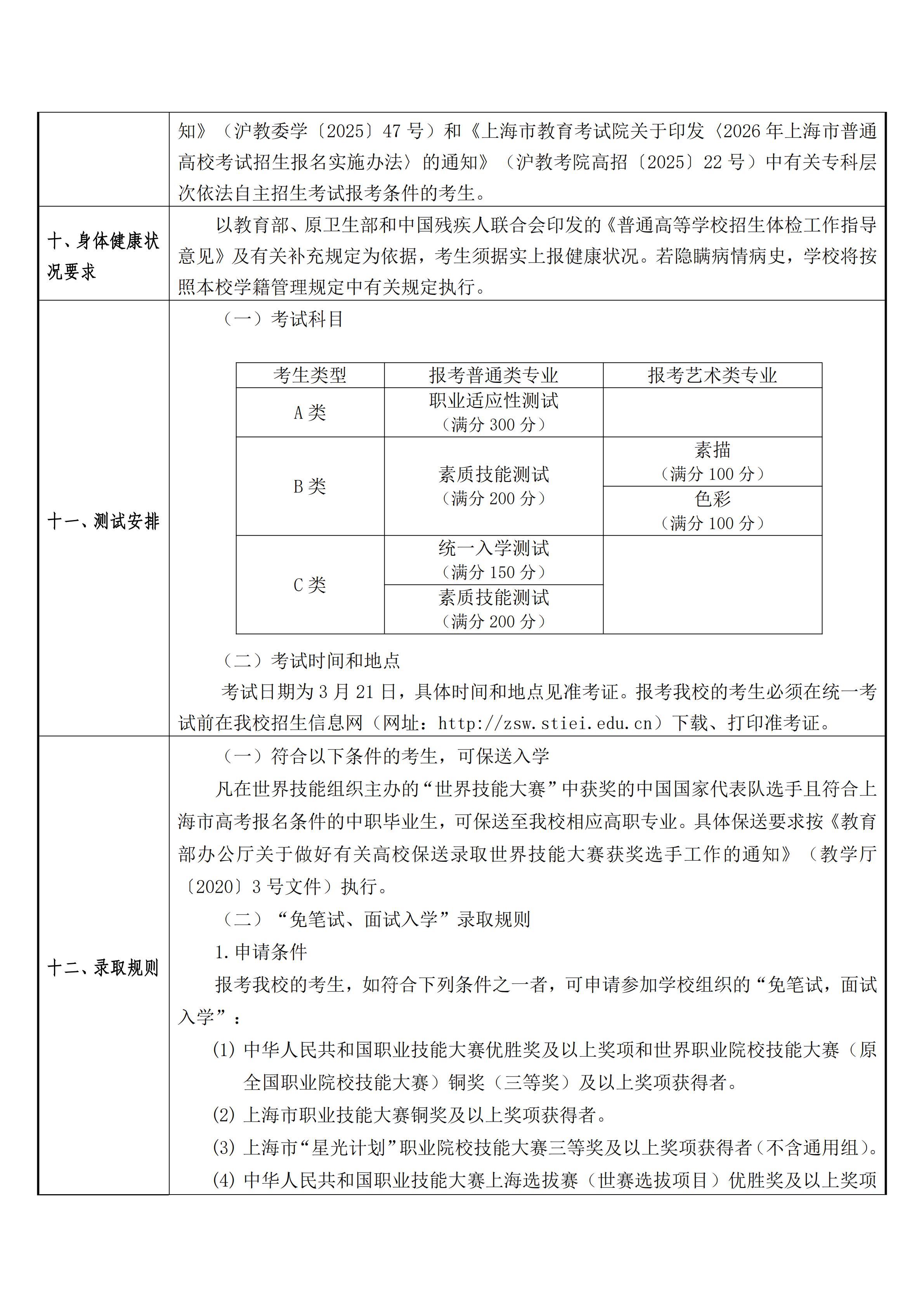 上海电子信息职业技术学院2026年专科层次依法自主招生章程