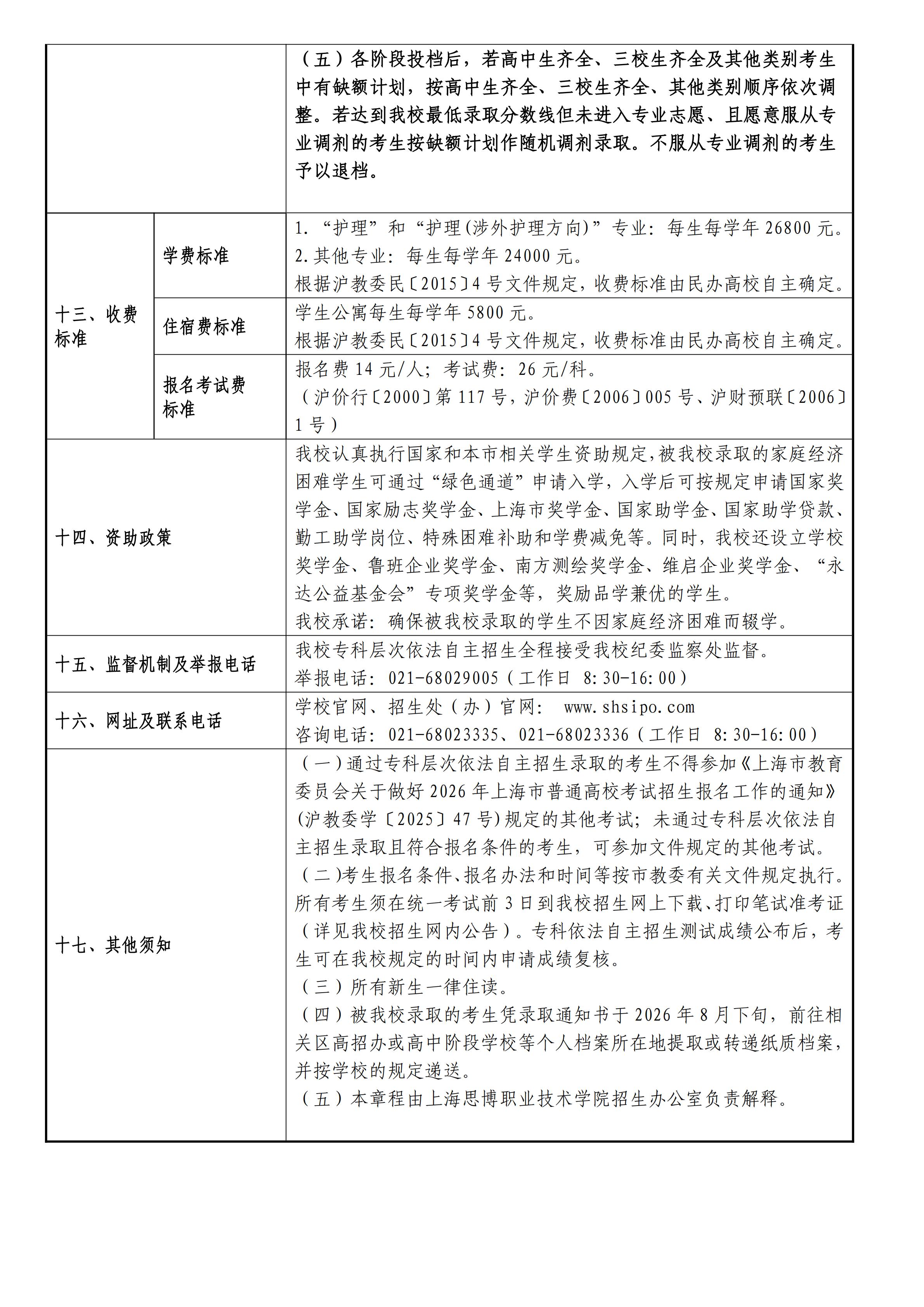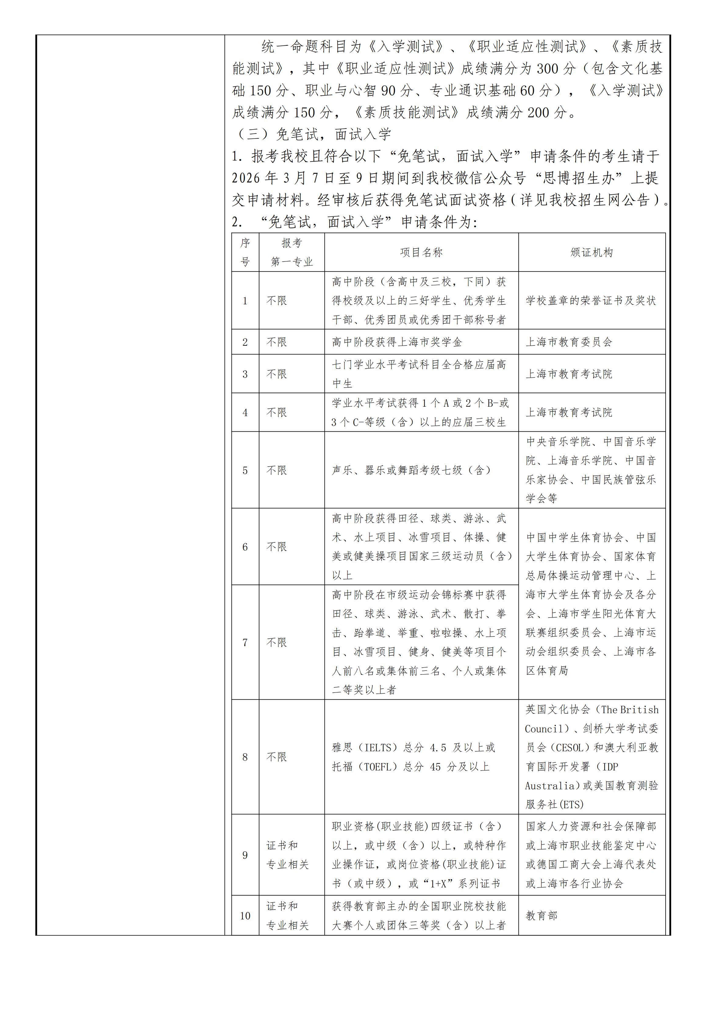 上海思博职业技术学院2026年专科层次依法自主招生章程