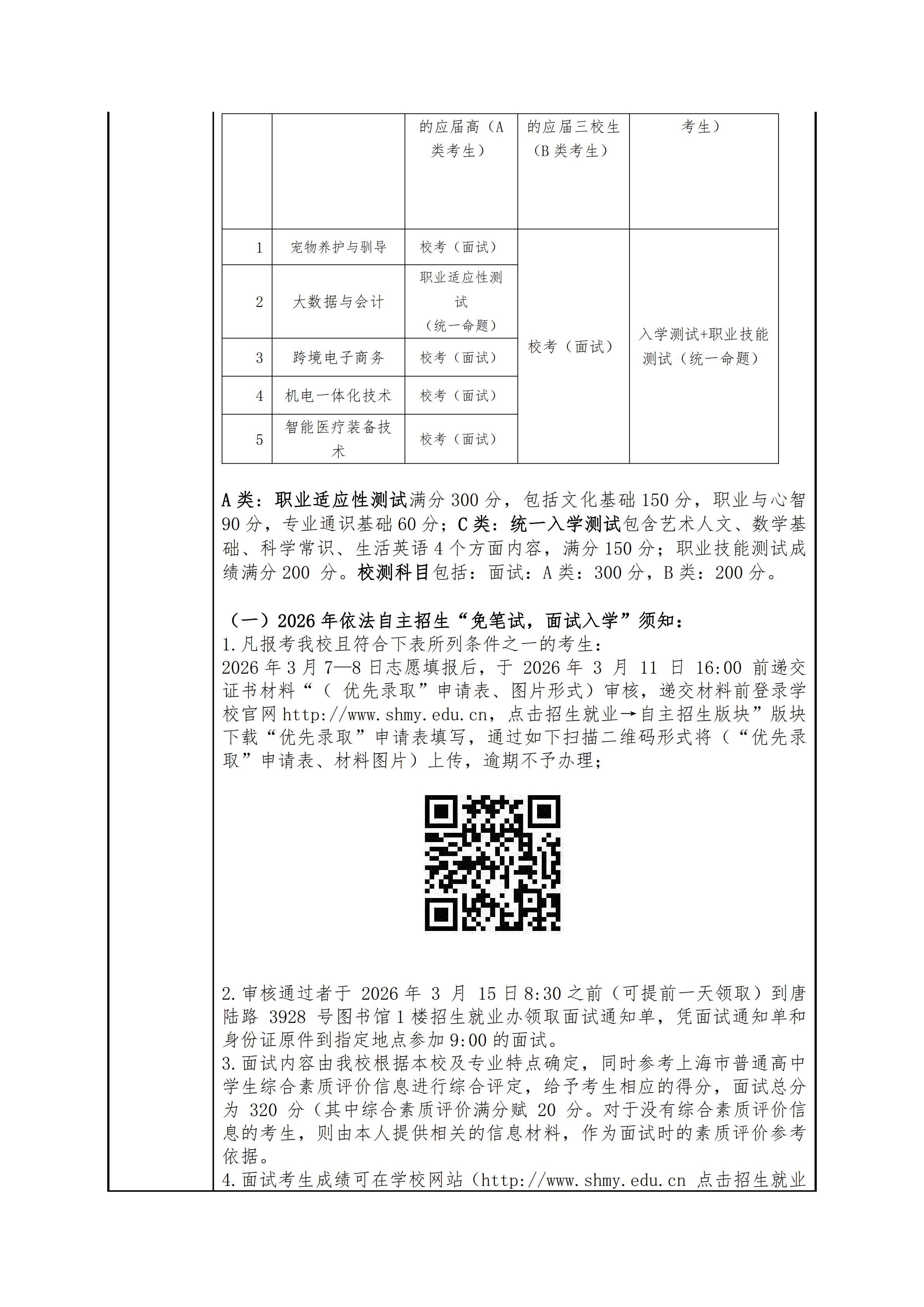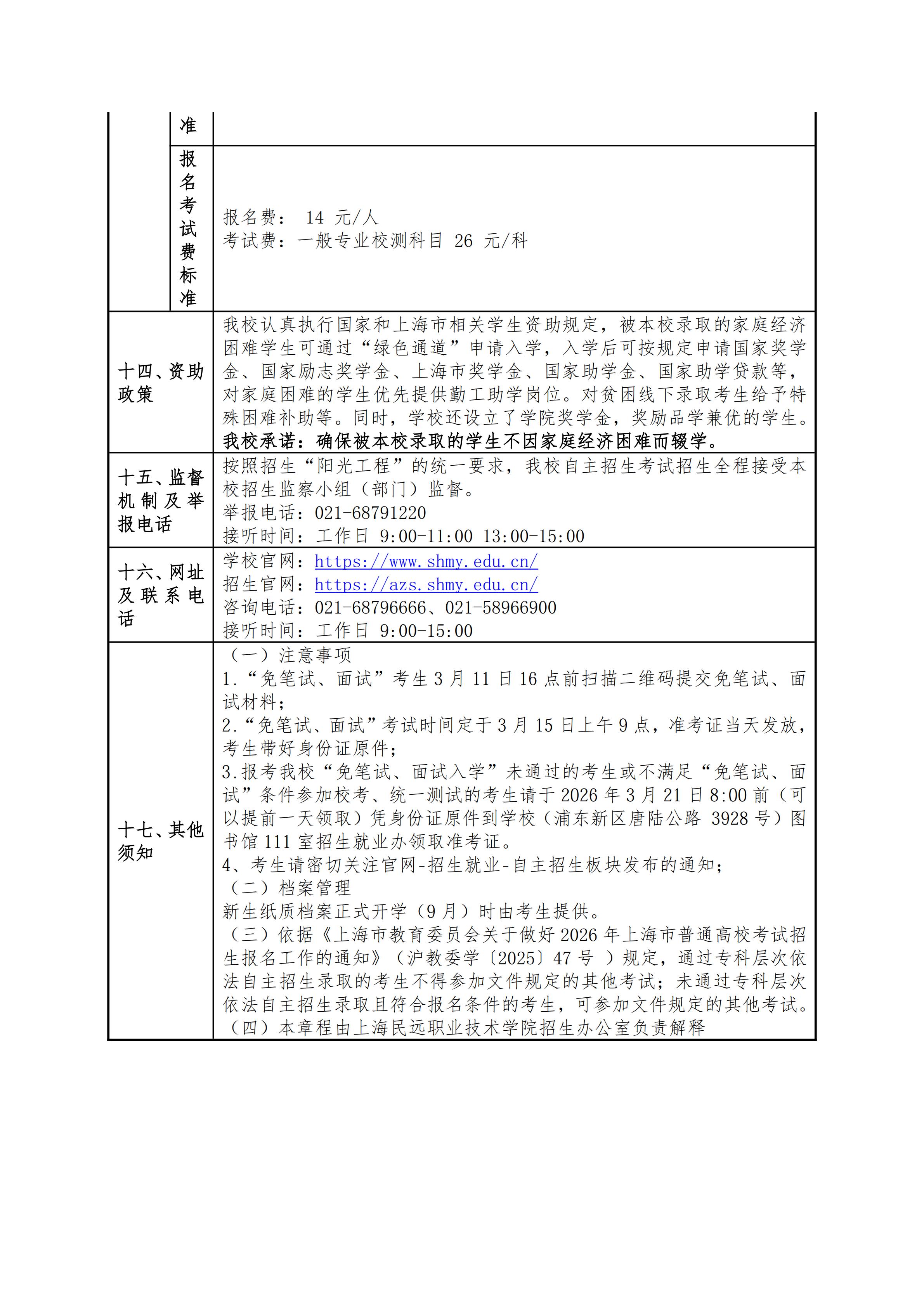 上海民远职业技术学院2026年专科层次依法自主招生章程