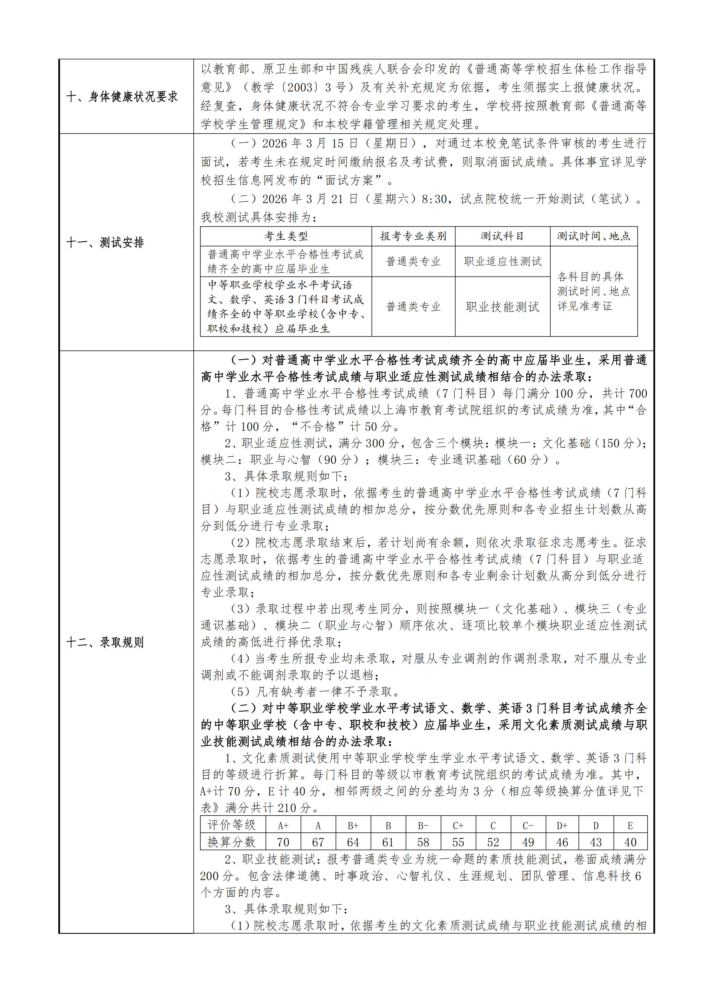 上海南湖职业技术学院2026年专科层次依法自主招生章程