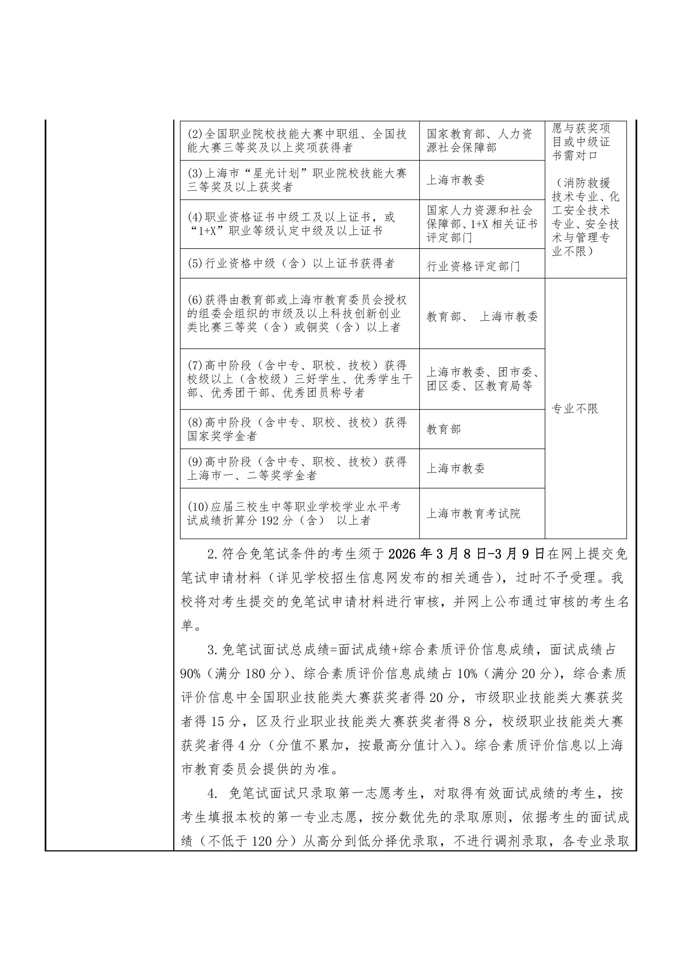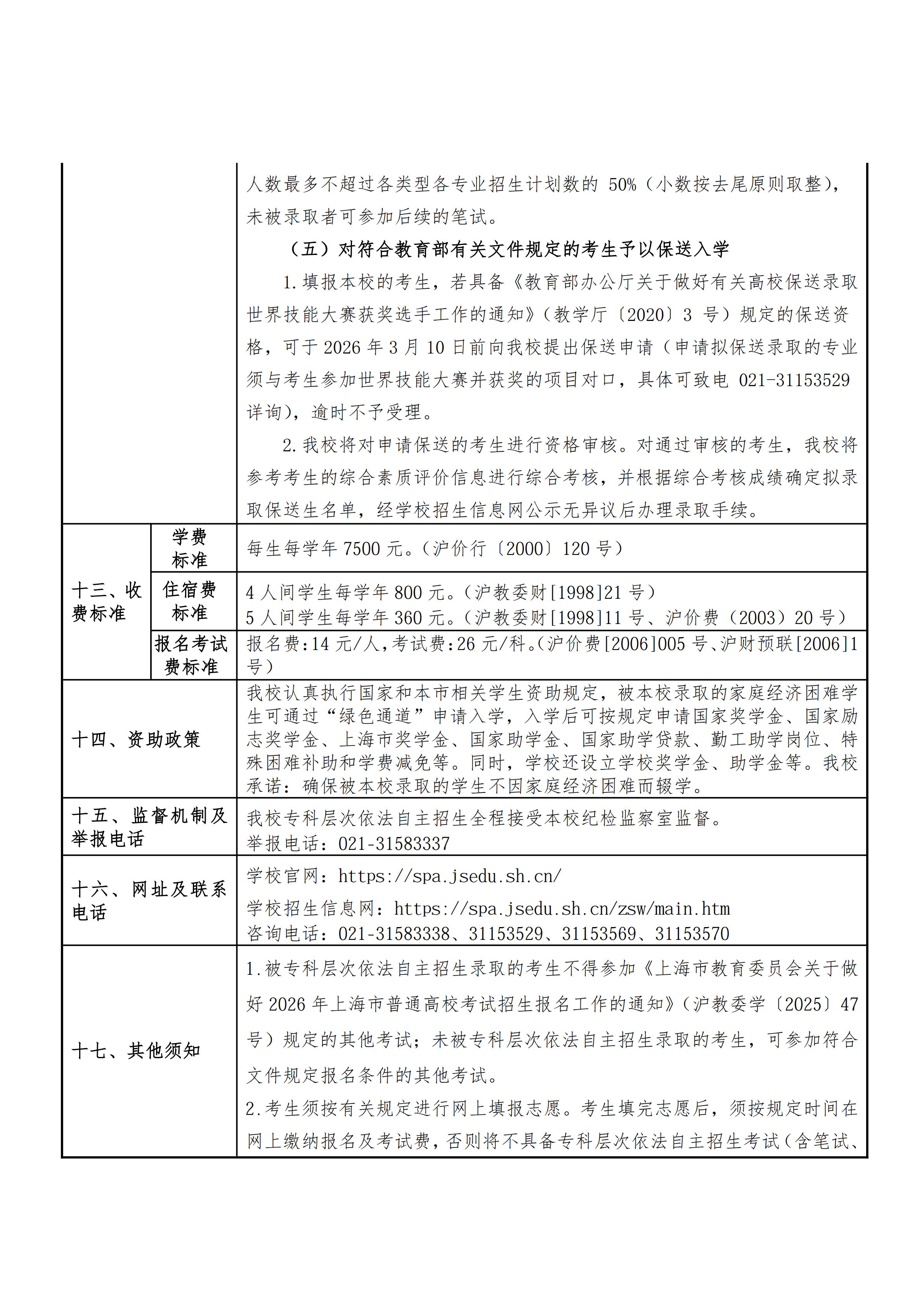 上海闵行职业技术学院2026年专科层次依法自主招生章程 2026-03-09 -