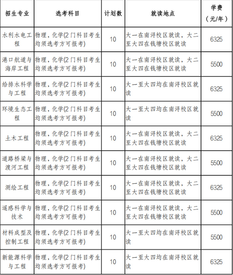 一、徐州工程学院在浙江综合类各个专业招生计划和学费