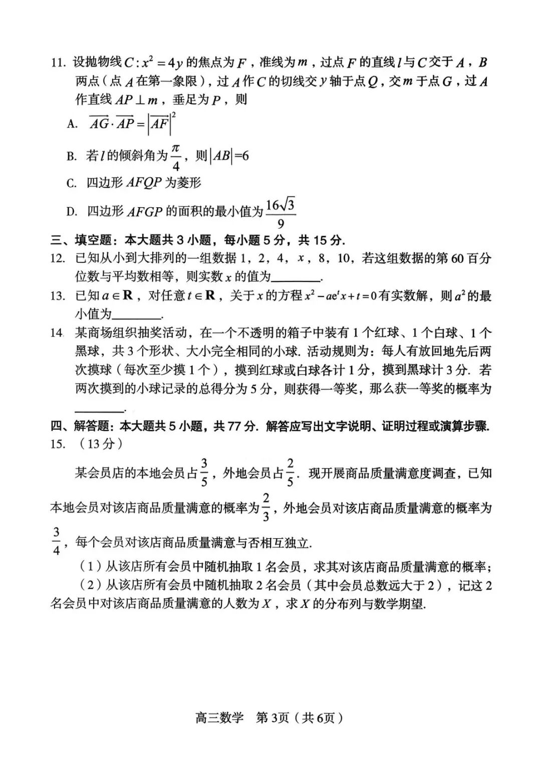 【超清无水印】:高三,福建省龙岩市2026年高中毕业班三月教学质量检测