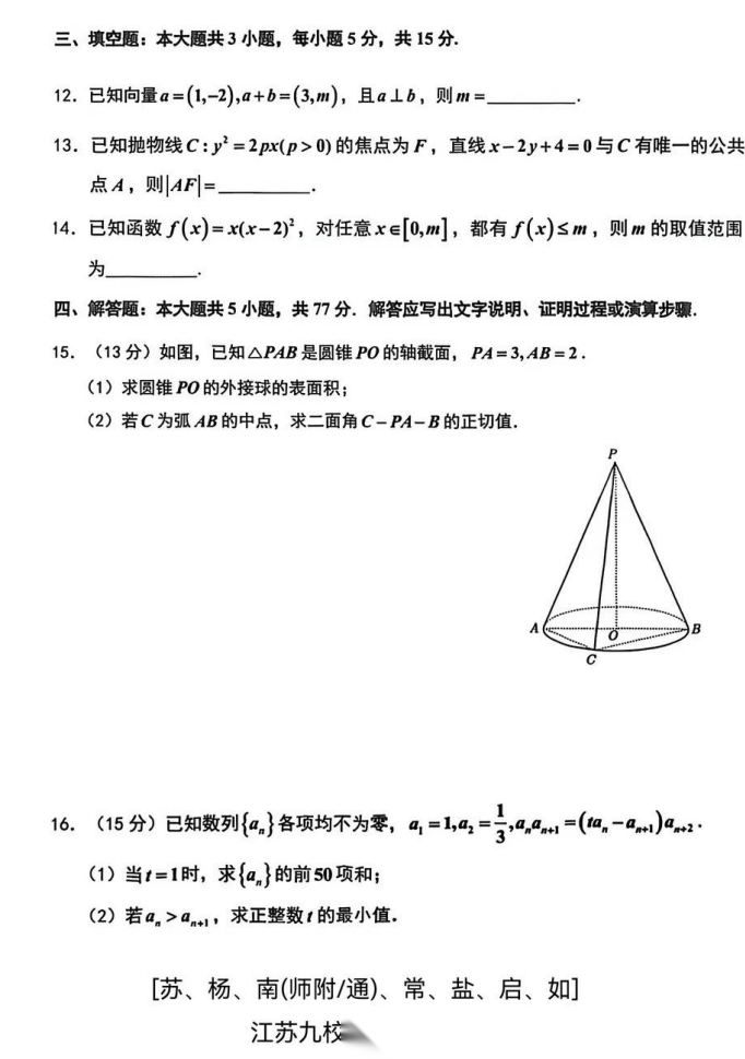 【江苏卷】江苏省南师附中、苏州、天一、扬州、南通、如皋、启东、常州、盐城九校2026届高三年级二月联考(3.9-3.10)全科试题卷+答案