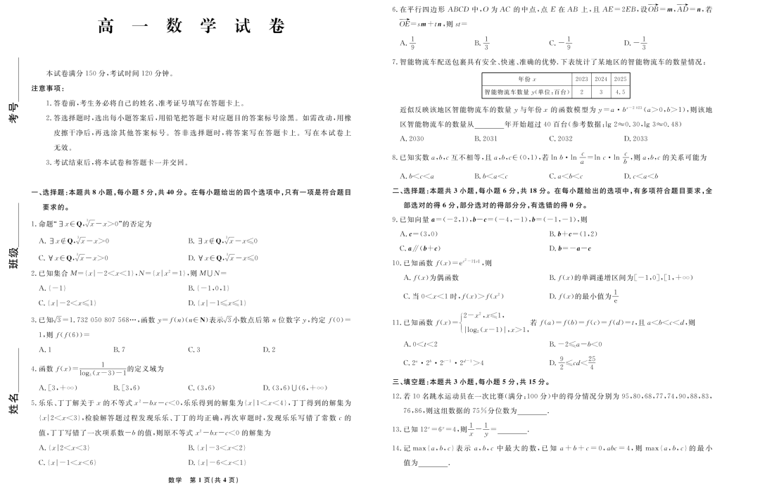 【黑吉辽蒙卷】【高一】辽宁省名校联盟2026年高一下学期3月测试(3.3-3.4) 全科试题卷+答案