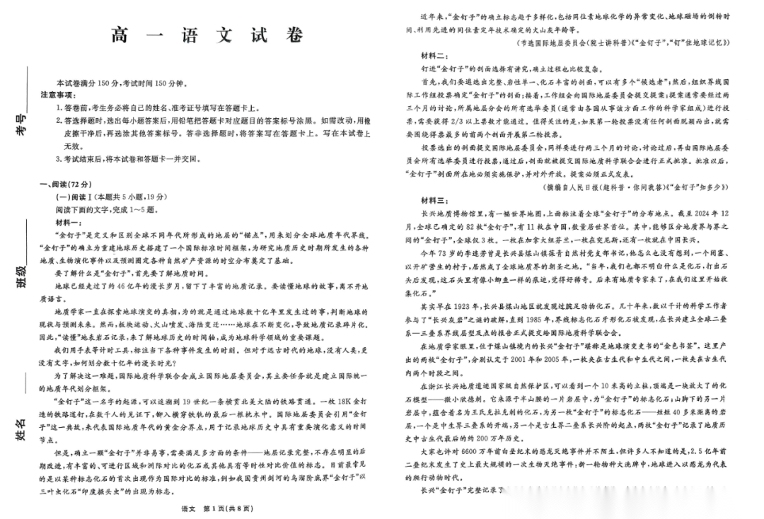 【浙江卷】【高一】浙江省强基联盟2026年3月高一年级下学期返校联考(3.4-3.6) 全科试题卷+答案 【浙江卷】【高一】浙江省强基联盟2026年3月高一年级下学期返校联考(3.4-3.6) 全科试题卷...