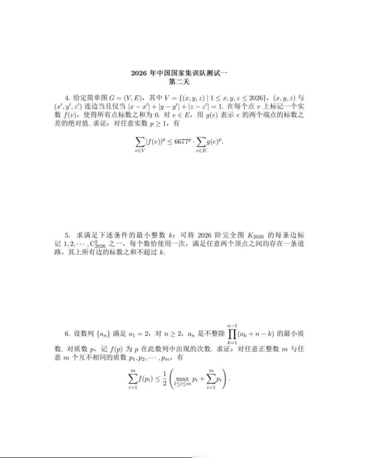 【IMO】【数学竞赛】2026年第67届IMO国家集训队第一阶段集训考试(3.7-3.8)(第二阶段考试为3.12-3.13) 第一天试题+第二天试题