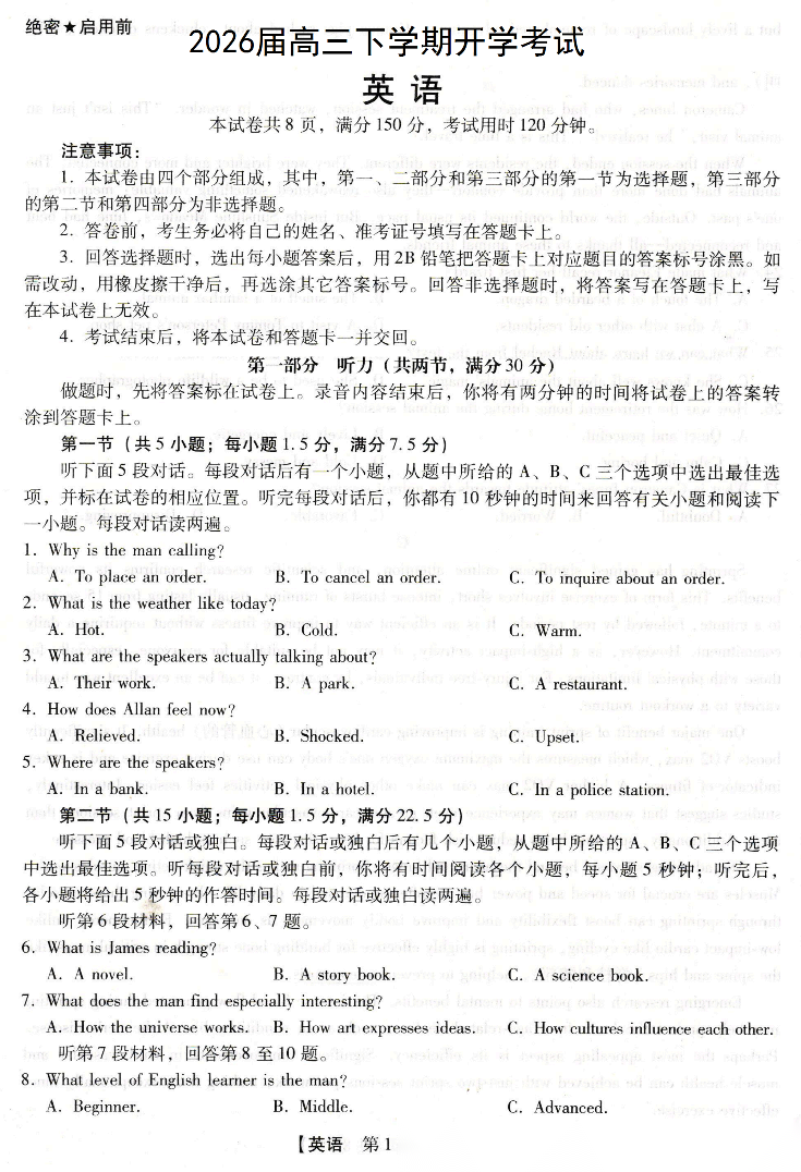 【四川卷】四川省大数据联盟2026届高三年级3月开学联考(3.6-3.7) 全科试题卷(含日语)+答案 【四川卷】四川省大数据联盟2026届高三年级3月开学联考(3.6-3.7) 全科试题卷(含日语)+答案