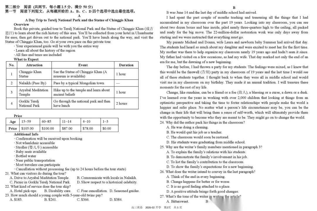 【黑吉辽蒙卷】吉林省通化市梅河口市第五中学2025-2026学年高三下学期开学考试(2.25-2.26) 全科试题卷+答案 【黑吉辽蒙卷】吉林省通化市梅河口市第五中学2025-2026学年高三下学期开学考试(2.25-2.26) 全科...
