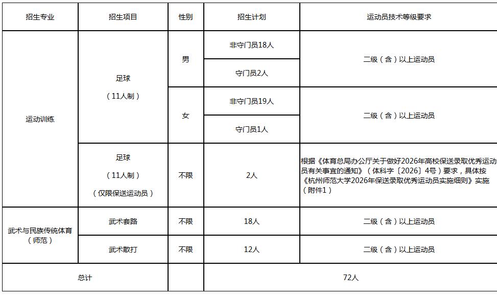 杭州师范大学2026年运动训练、武术与民族传统体育专业招生简章 杭州师范大学是浙江省重点建设高校,是一所以师范教育为传统、文理并重、人文社会科学与自然科学协调发展的综合性大学。学校办学...