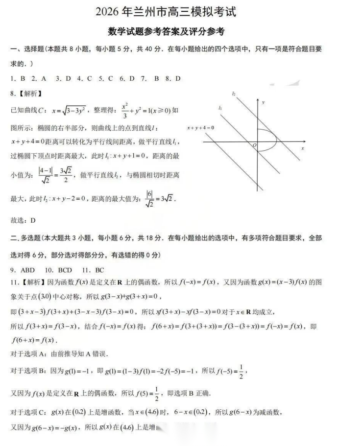 【甘肃卷】甘肃省2026年高三年级第一次模拟考试题试(甘肃一模)(3.11-3.13) 数学语文试题卷+答案 【甘肃卷】甘肃省2026年高三年级第一次模拟考试题试(甘肃一模)(3.11-3.13) ...