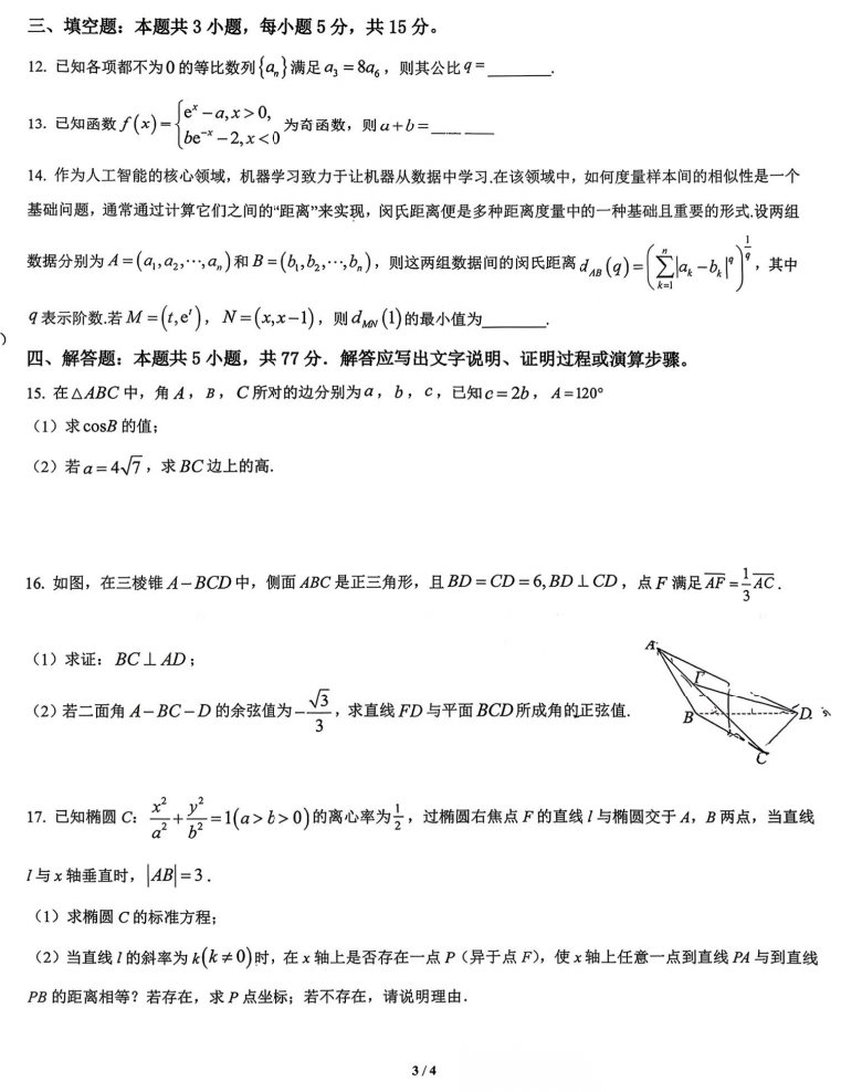 【超清无水印】:高三,新疆2026年普通高考三月适应性检测 【超清无水印】:高三,新疆2026年普通高考三月适应性检测