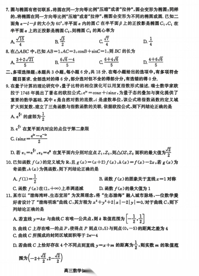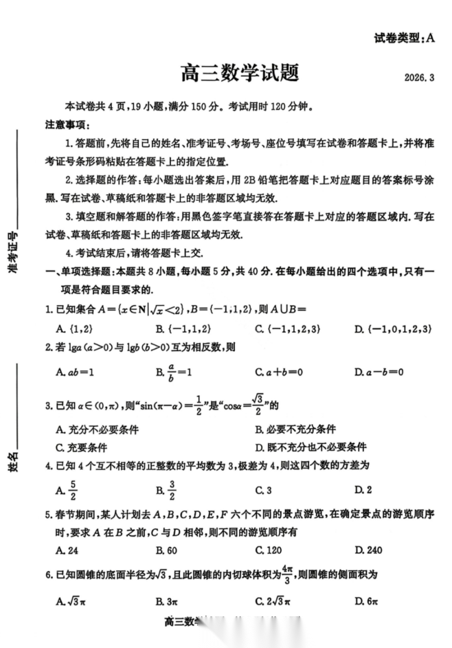 【超清无水印】:高三,新疆2026年普通高考三月适应性检测 【超清无水印】:高三,新疆2026年普通高考三月适应性检测