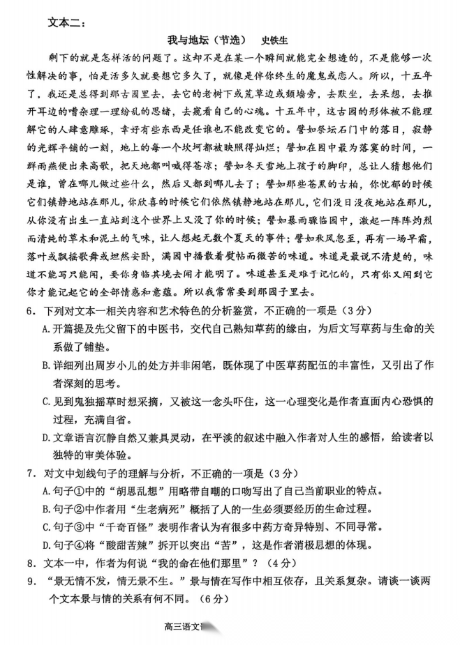 【山东卷】山东省淄博市2025-2026学年度高三年级3月模拟考试(淄博一模)(3.10-3.13) 数学语文试题卷+答案