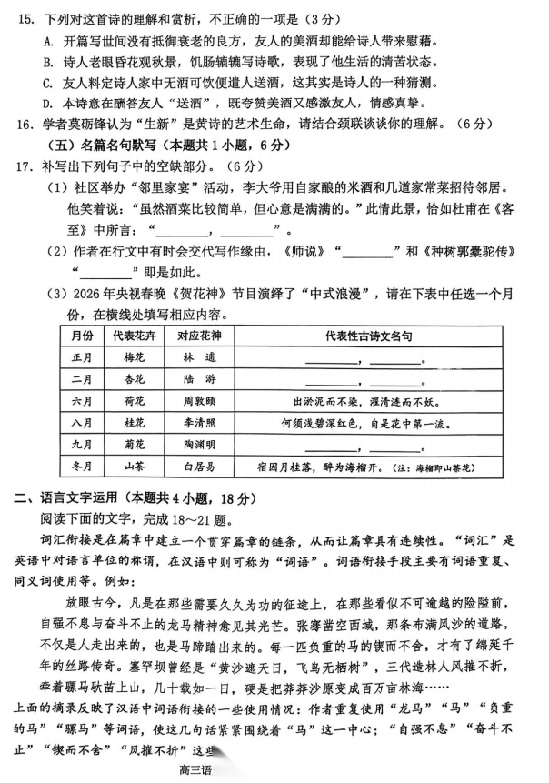 【湖北卷】湖北省武汉市2026届高中毕业生高三年级下学期三月调研考试(武汉三调)(3.11-3.13) 数学语文试题卷+答案 【湖北卷】湖北省武汉市2026届高中毕业生高三年级下学期三月调研考试(武汉三调)(3.11-3.13) ...