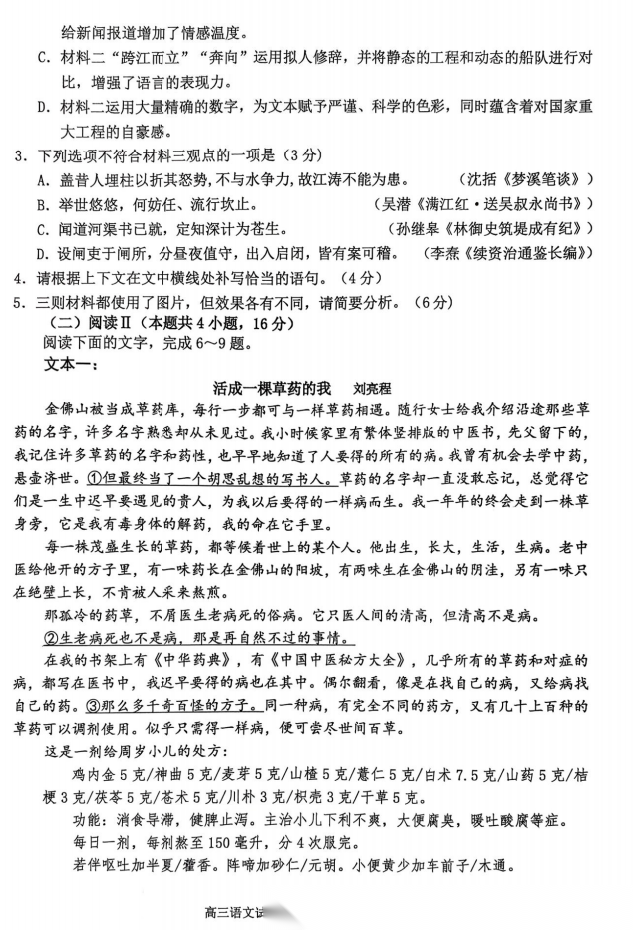 【Top25强校】【山东卷】山东省山东实验中学2026届高三3月第四次诊断性考试(省实验四诊)(3.11-3.12) 数学化学语文试题卷 【Top25强校】【山东卷】山东省山东实验中学2026届高三3月第四次诊断性考试(省实验四诊)(3.11-3.12) ...