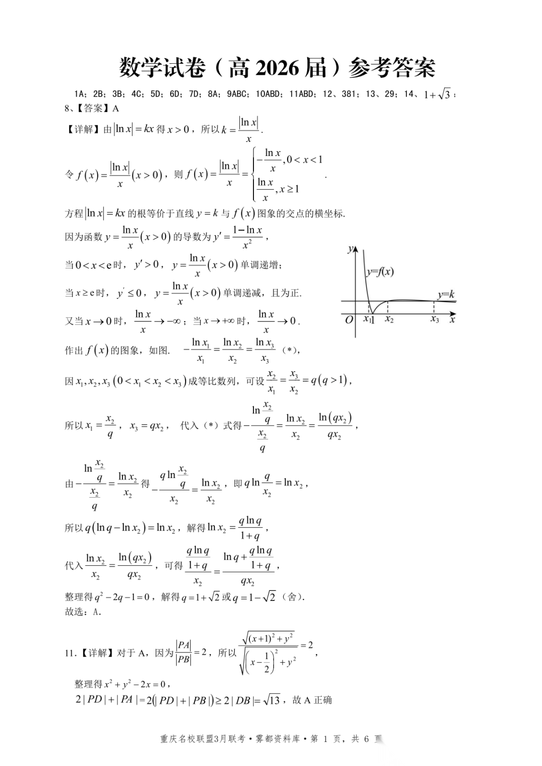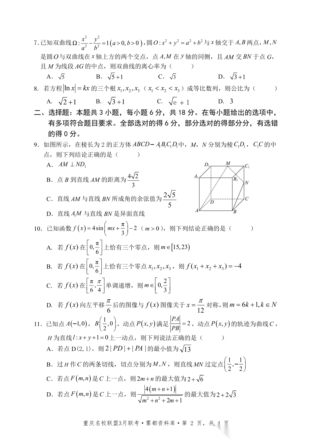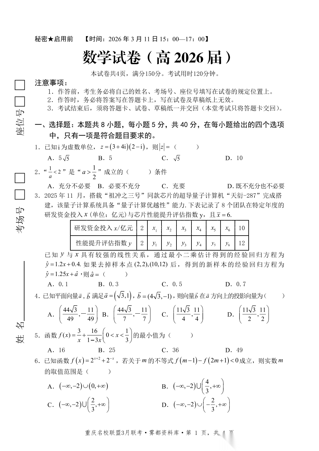 【全科】重庆市名校联盟2026届高三下学期3月联合考试(七校)