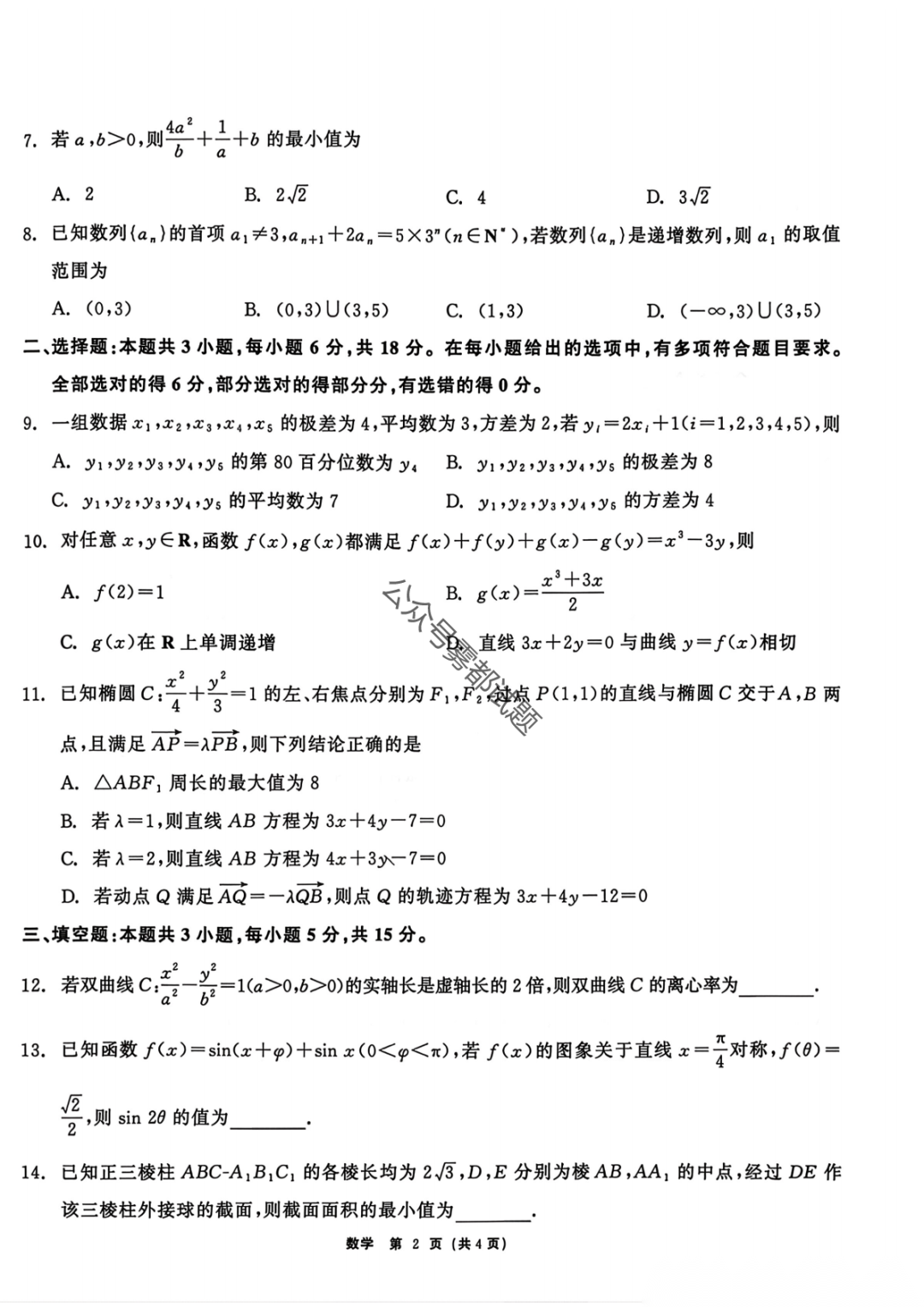 【旧(老)高考卷】新疆维吾尔族自治区2026年普通高考三月适应性检测(3.9-3.10) 全科试题卷+答案 【旧(老)高考卷】新疆维吾尔族自治区2026年普通高考三月适应性检测(3.9-3.10) ...