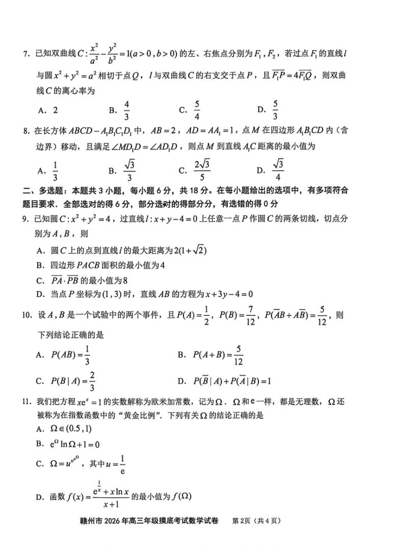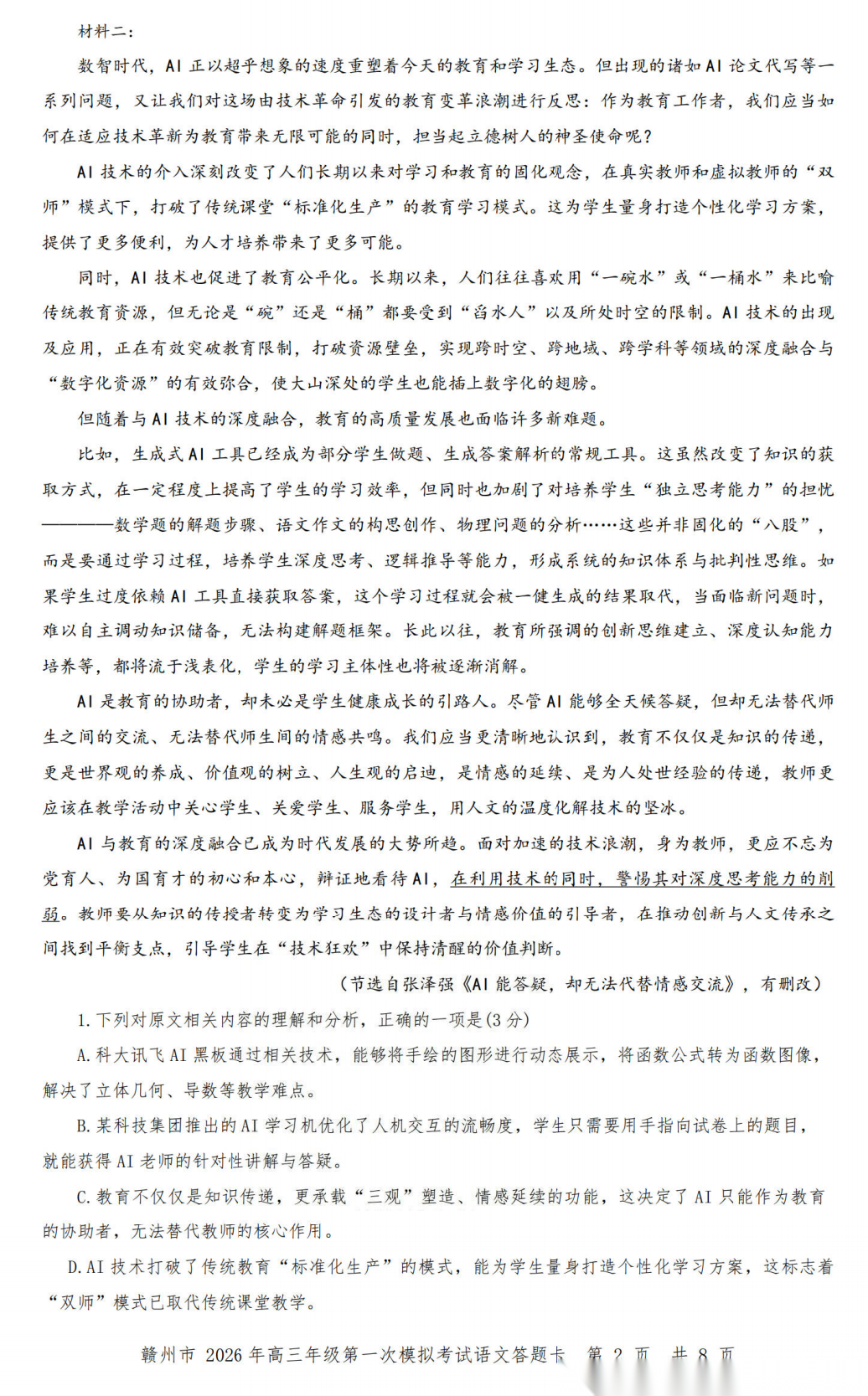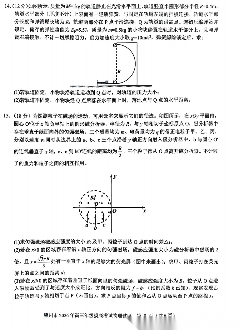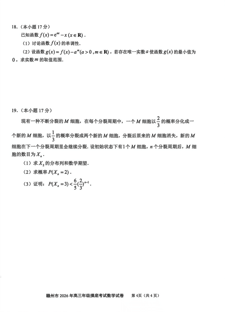 【江西卷】江西省赣州市2026年高三年级下学期摸底考试(赣州一模)(3.12-3.13) 数学物理语文历史试题卷+答案
