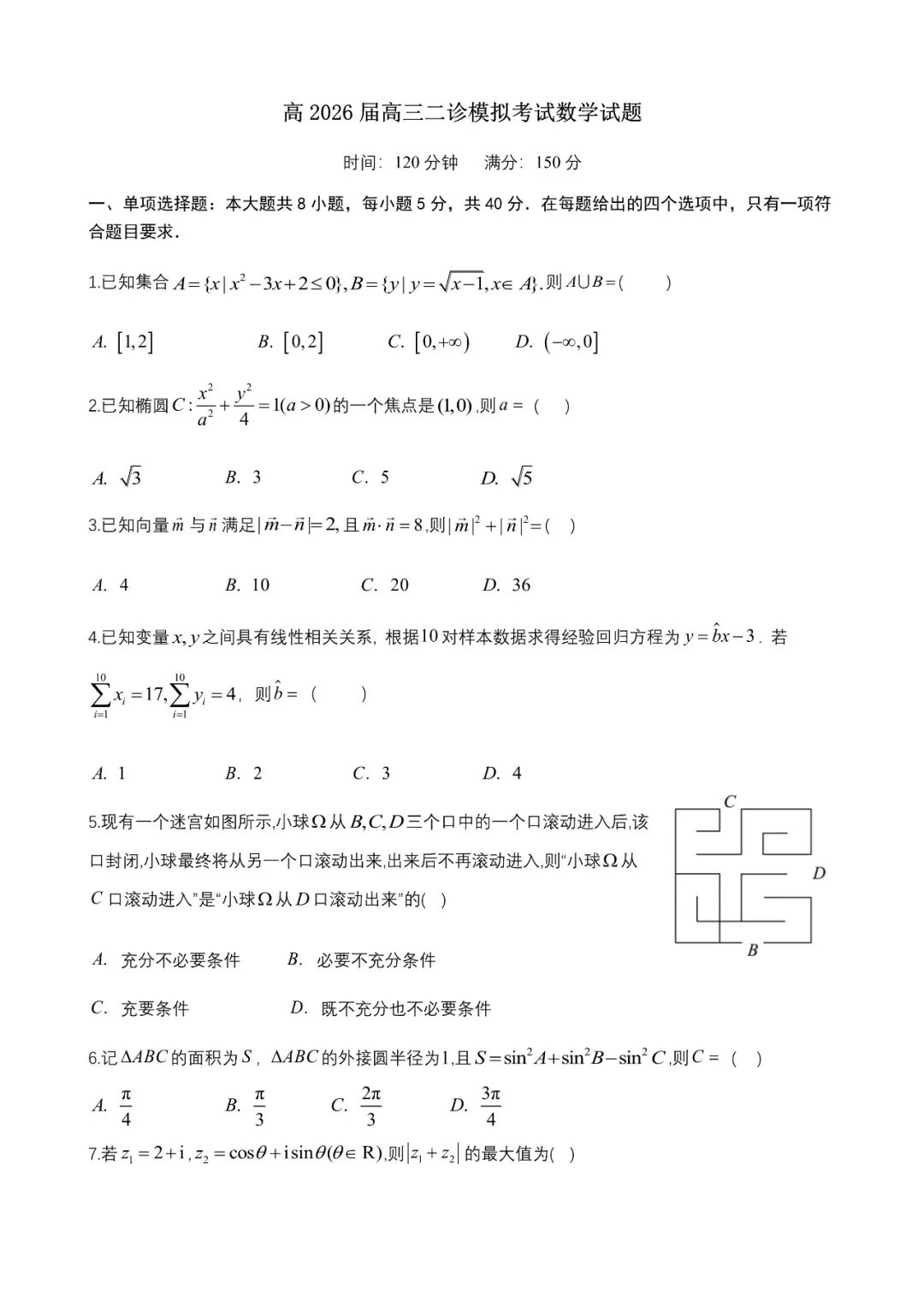 【全科】四川省成都市第七中学2025~2026学年度下期高2026届二诊模拟考试