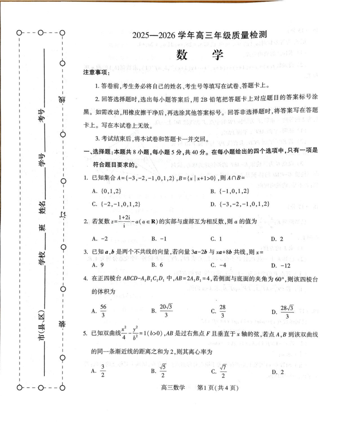 【全科】新疆2026年普通高考三月适应性检测 【全科】新疆2026年普通高考三月适应性检测