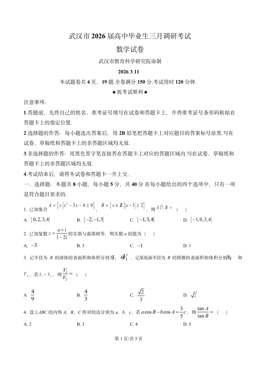 【武汉三调英语答案】武汉市2026届高中毕业生三月调研考试试卷答案出炉!英语速看 【武汉三调英语答案】武汉市2026届高中毕业生三月调研考试试卷答案出炉!英语速看