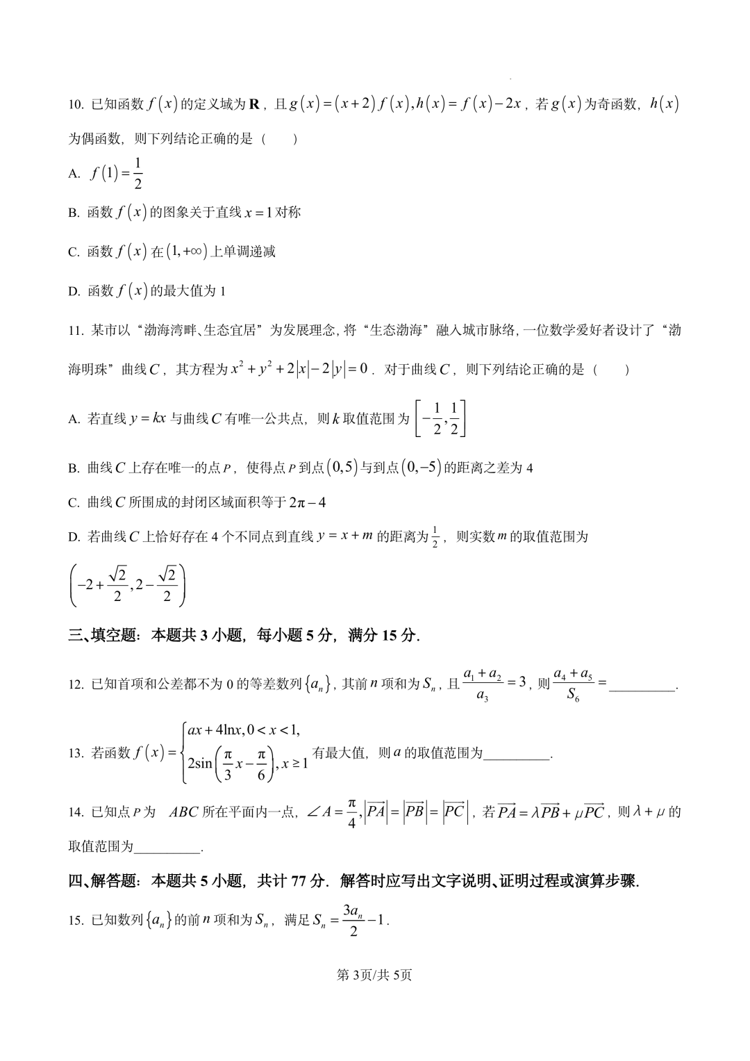 山东省滨州市2026届高三下学期3月一模考试(滨州一模)