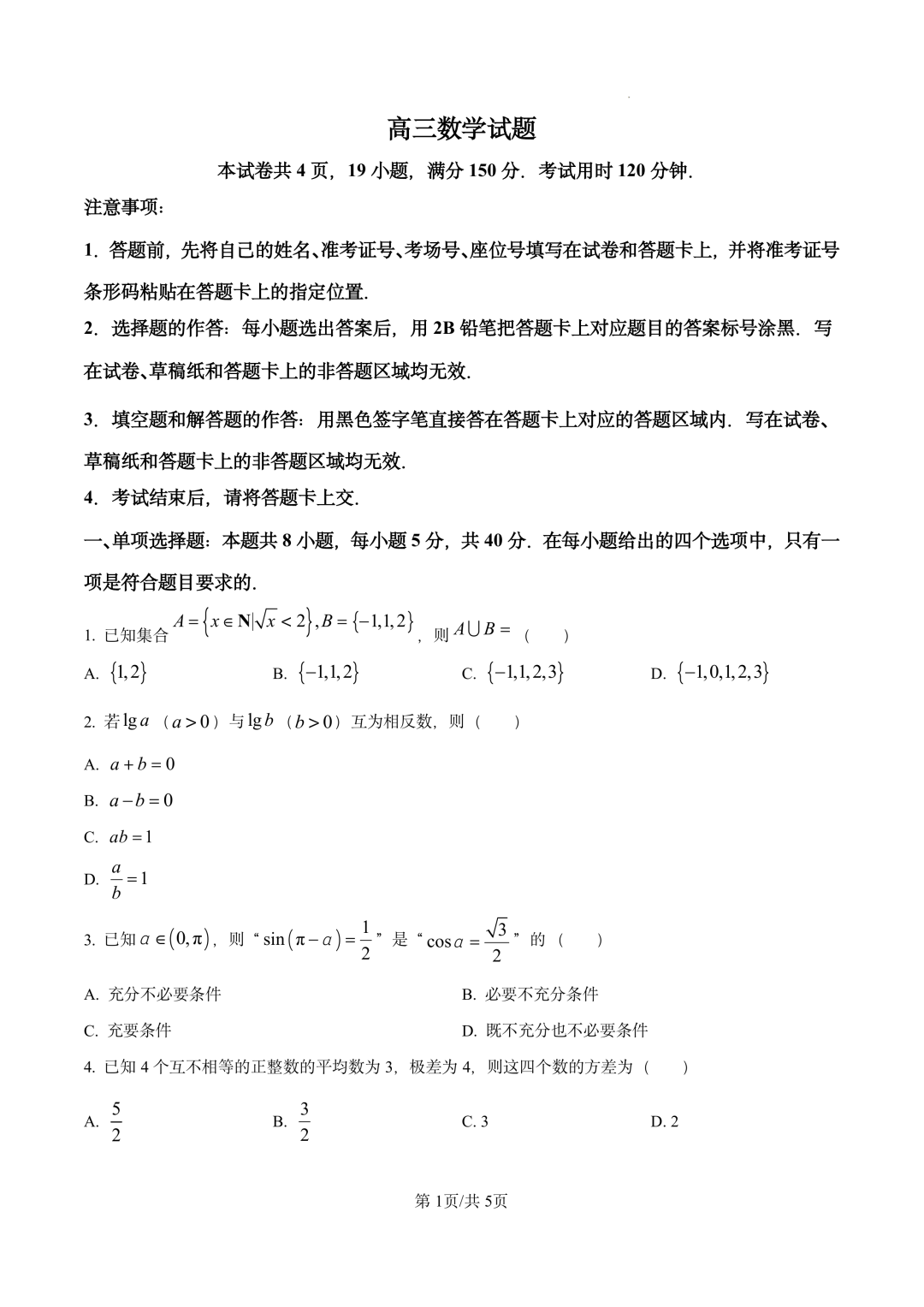 新疆2026届高三下学期三月适应性检测 新疆2026届高三下学期三月适应性检测