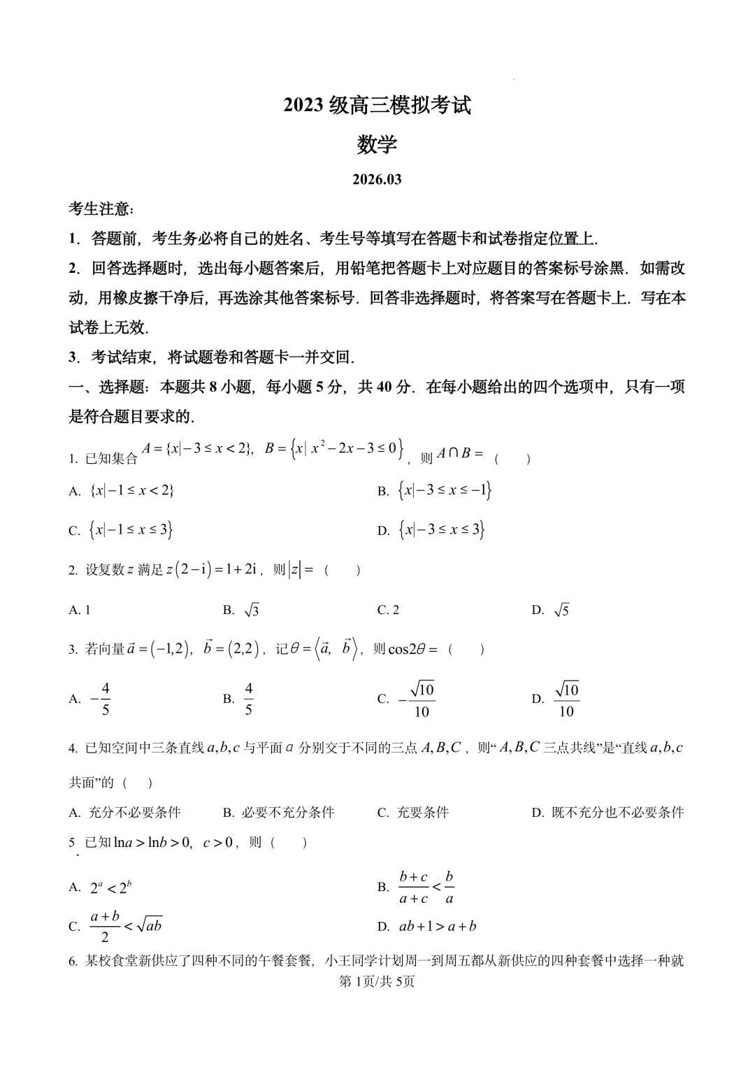 新疆2026届高三下学期三月适应性检测 新疆2026届高三下学期三月适应性检测