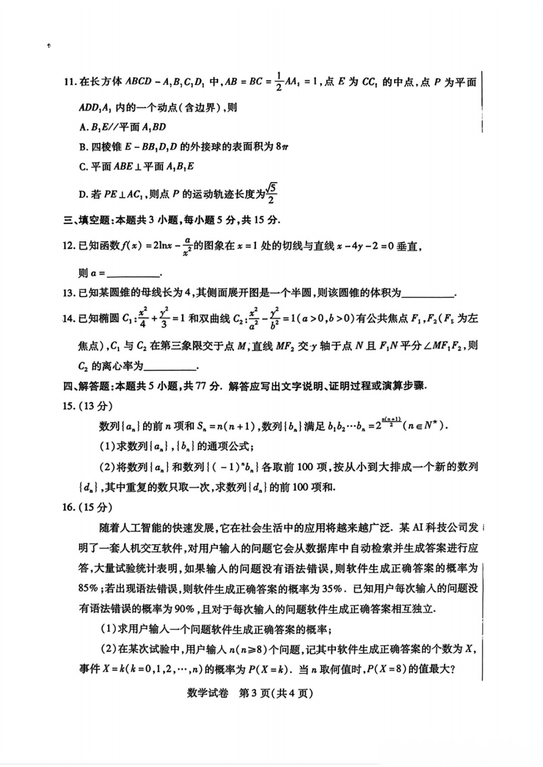 【包头一模全科】2026年包头市高三年级下学期第一次模拟考试