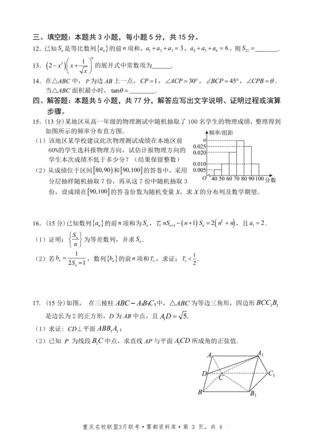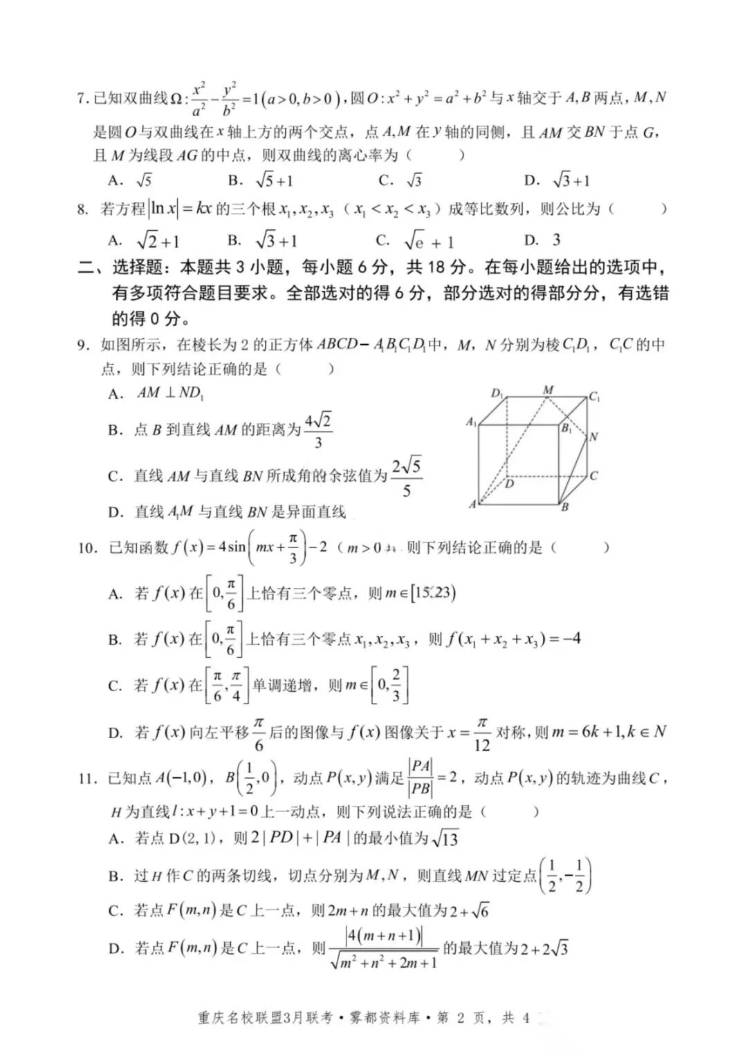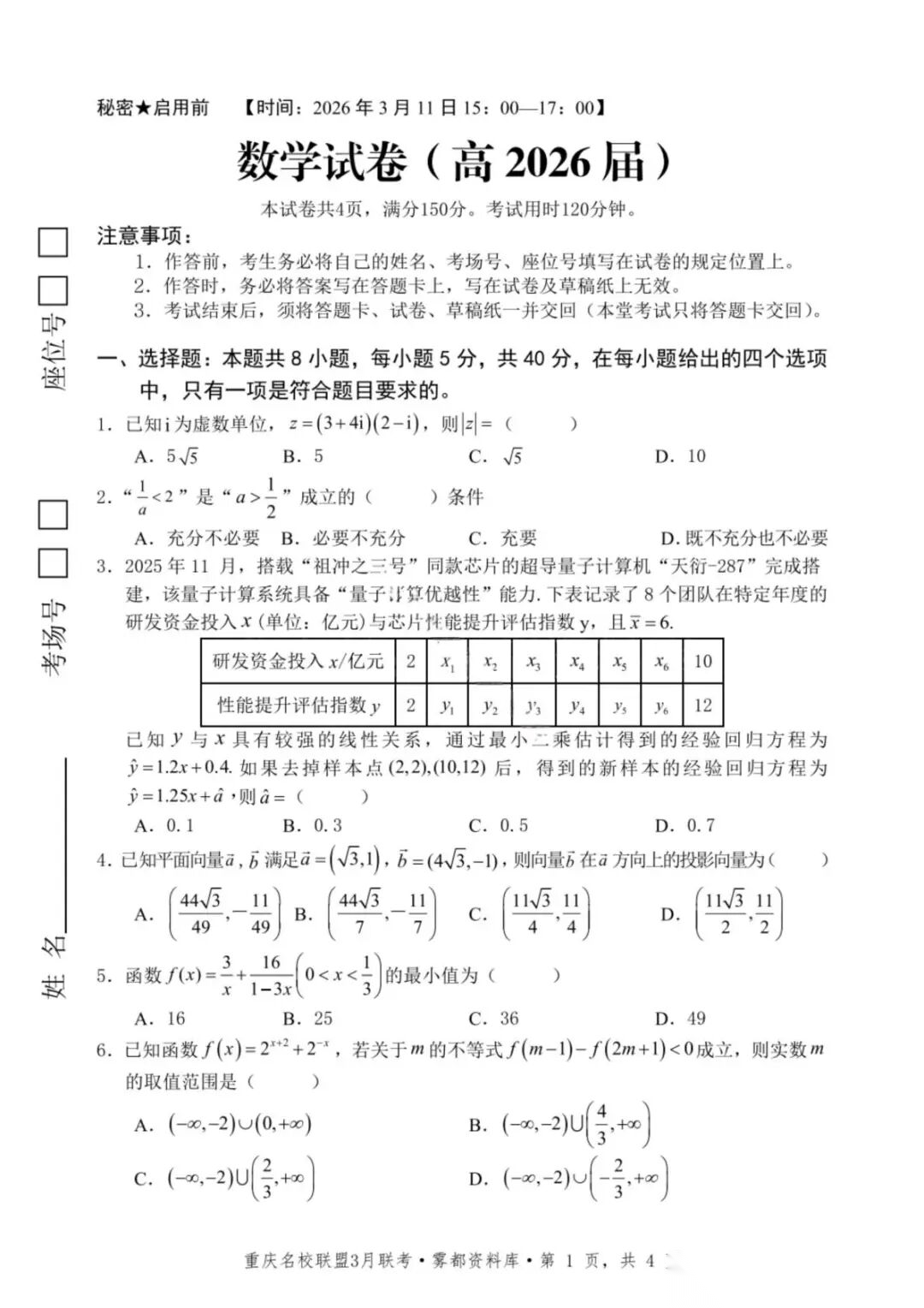 【超清无水印】:高三,2026届重庆七校名校联盟高三(下)3月联考