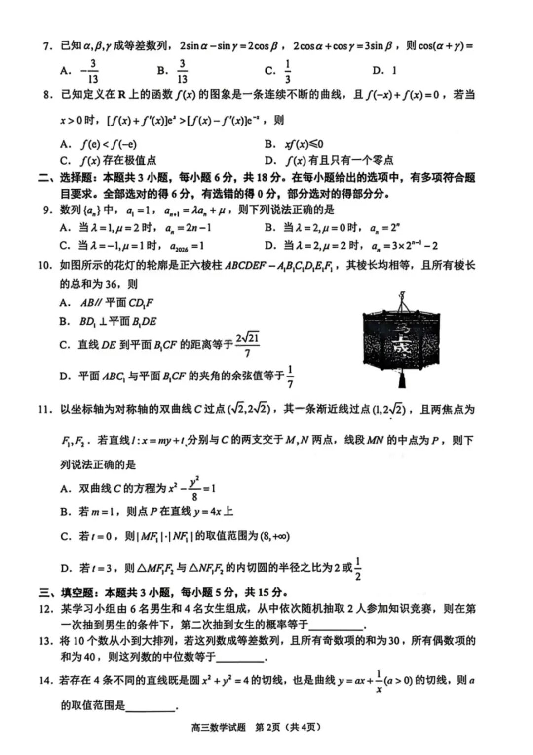【超清无水印】:高三,成都七中高2026届高三二诊模拟考试 【超清无水印】:高三,成都七中高2026届高三二诊模拟考试