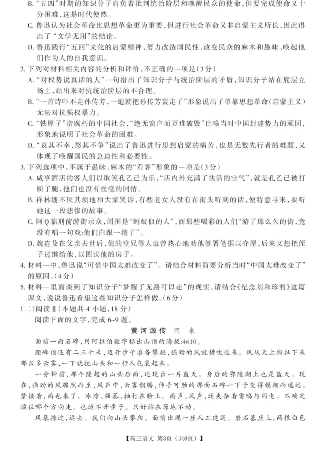 【超清无水印】:高三,山西省运城市2026年3月高考考前模拟测试